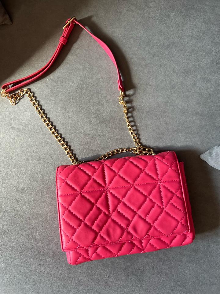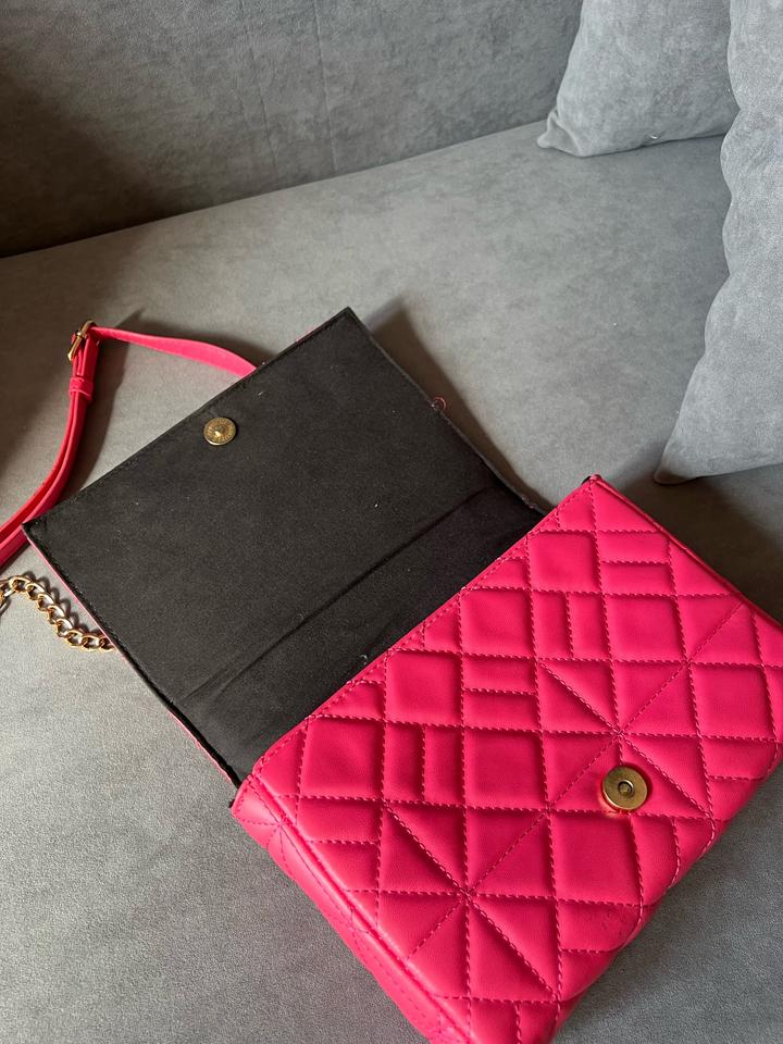 Сумка розовая для яркого образа, ручка с цепью. Внутри сумка уже поношенная, но снаружи выглядит хорошо Артикул: 597628