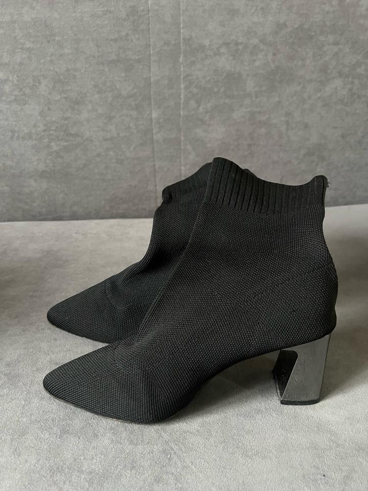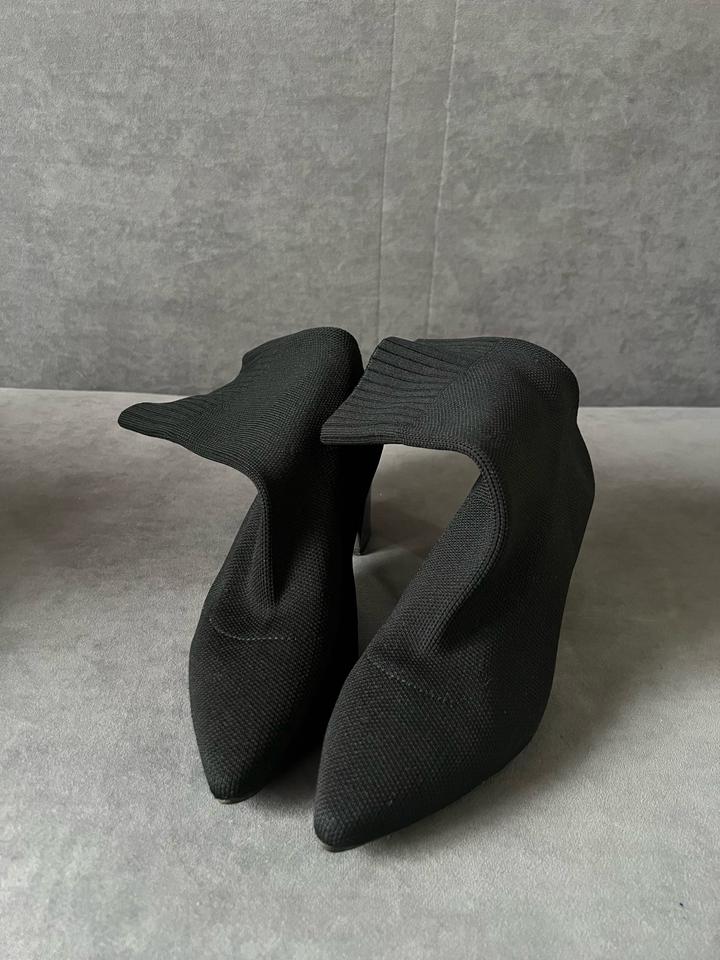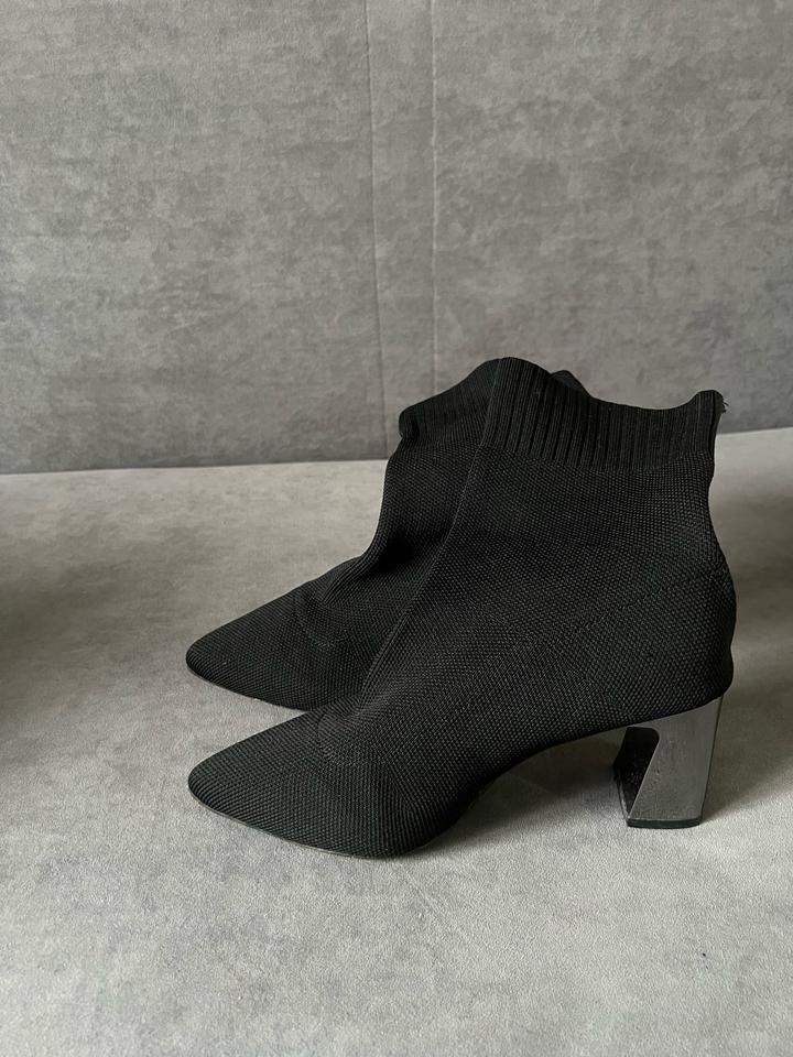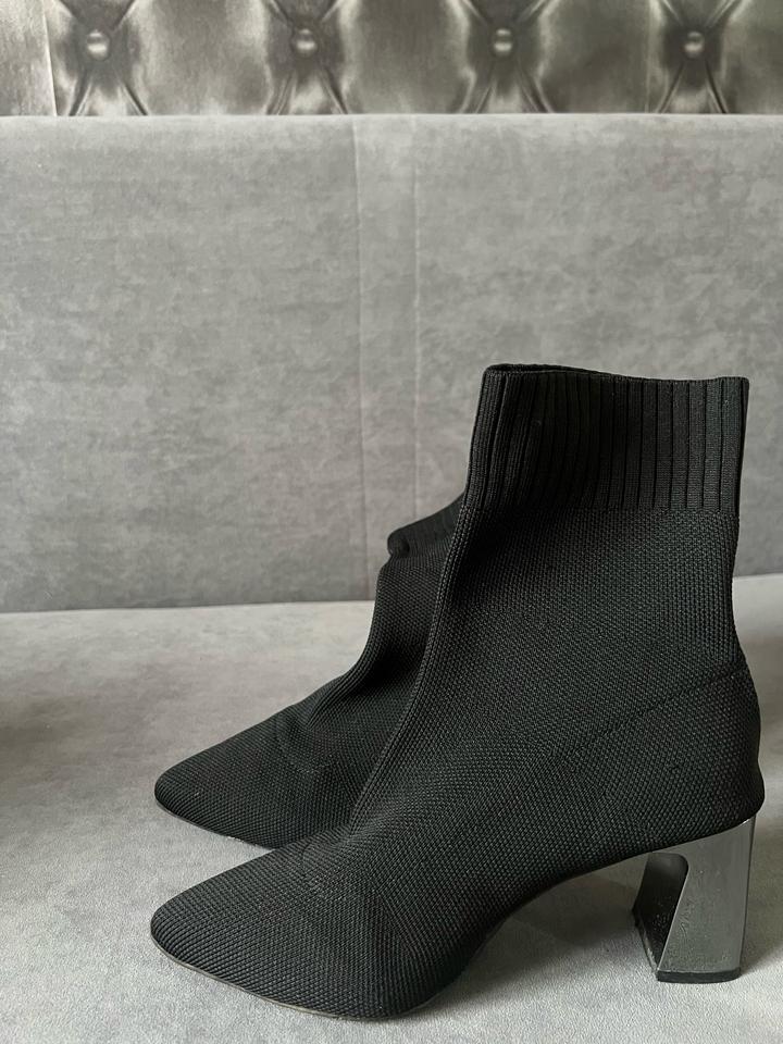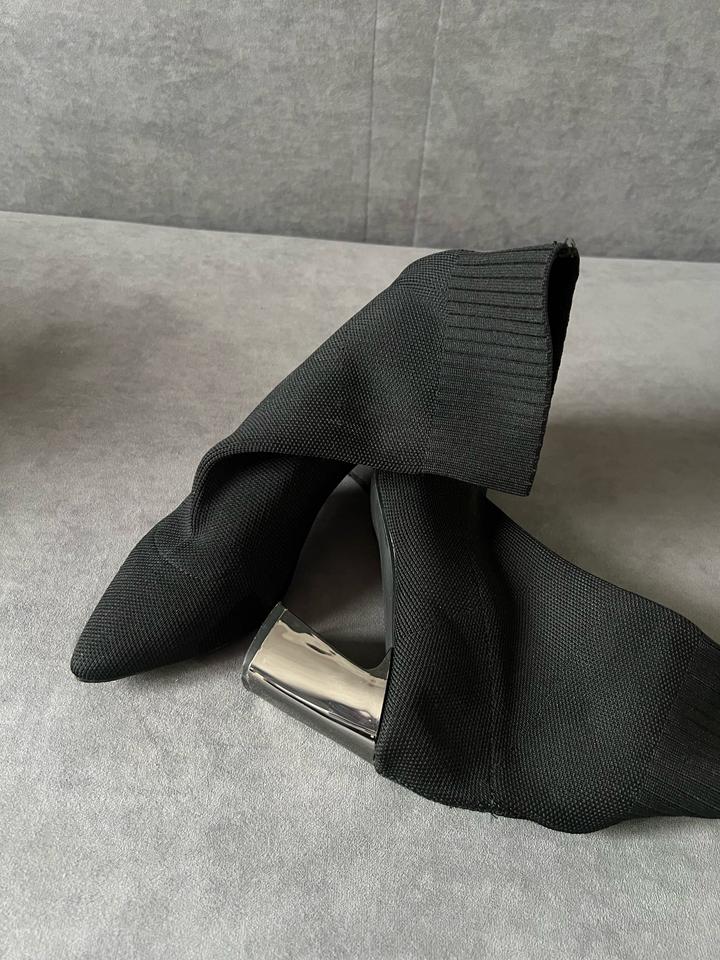 Полусапожки из ткани с металическим каблуком. Интересный дизайн, как носок с устойчивой подошвой и каблуком. Серебристый каблук Артикул: 597676