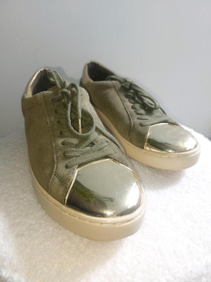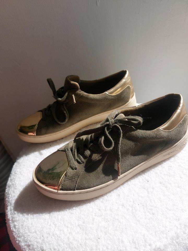 Оригинальные кроссовки Michael Kors Frankie в оливковом цвете. Состояние идеальное, надевались всего пару раз. Материал: Натуральная замша. Зеркальный мысок и акцент на пятке, мягкий язычок и воротник для удобной посадки. Подошва из резины с логотипом бренда. Размер: 39. Состояние: Отличное. Продаются без коробки. Артикул: 597700