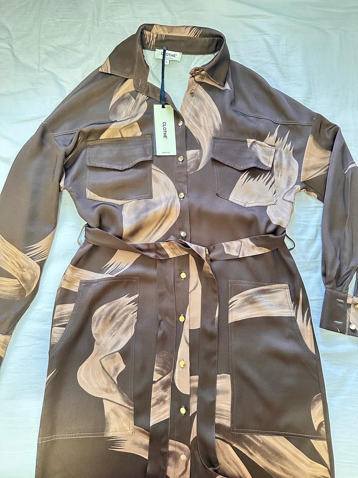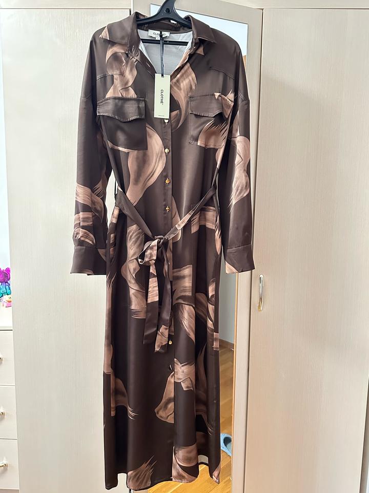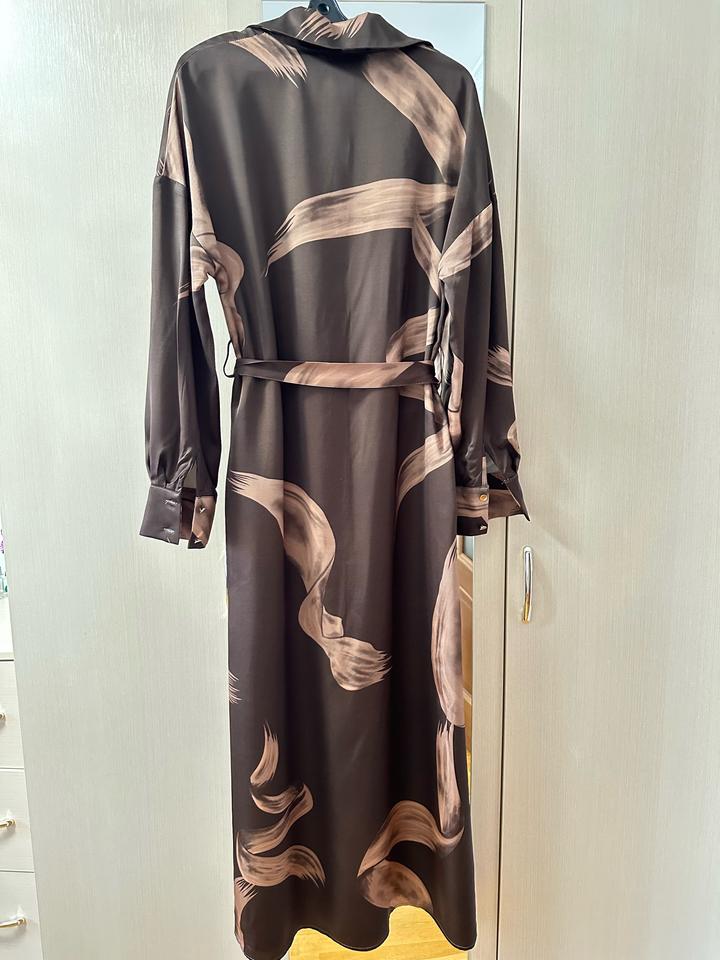 Новое платье итальянского бренда Clothe. Длина макси, цвет шоколад, фурнитура в золоте, рукава приспущены, карманы все рабочие Артикул: 597727