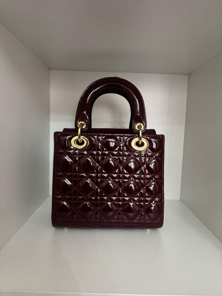 Lady Dior, натуральная лакированная кожа, цвет сочный бургунди, под оригинал, 1:1, была выкуплена у закрытых поставщиков. Без коробки. В идеальном состоянии Артикул: 597765