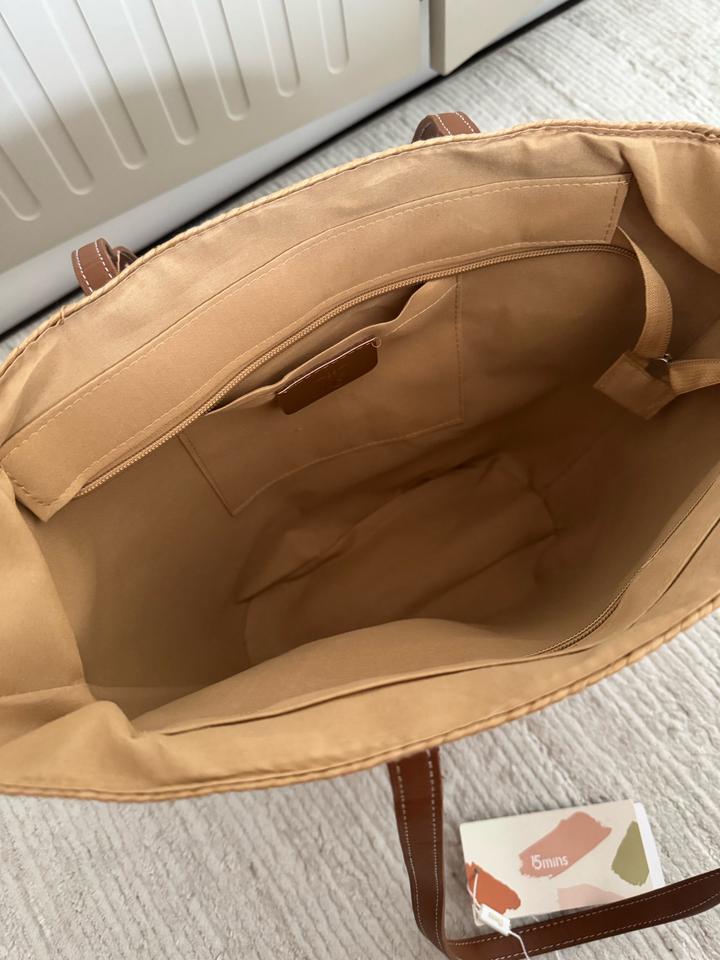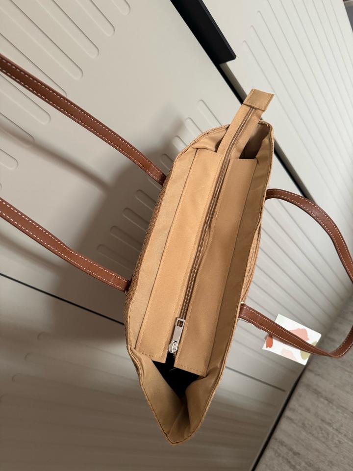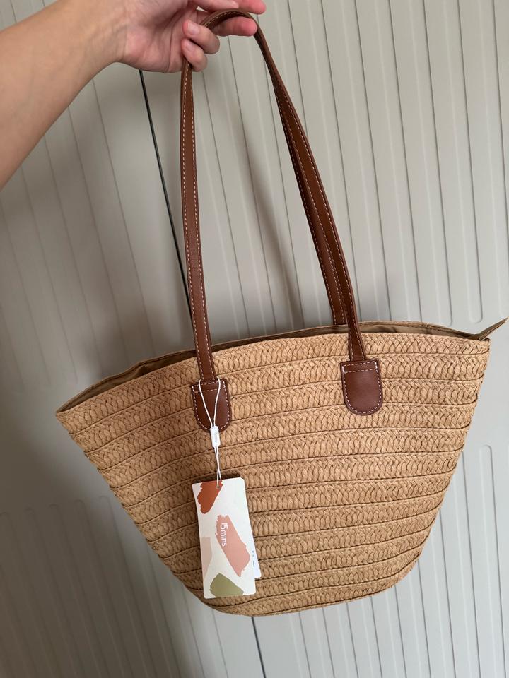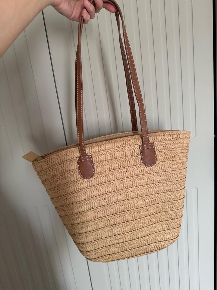 Выполнена из плотного плетёного материала (солома) в натуральном бежевом цвете, дополнена прочными коричневыми ручками под кожу. Абсолютно новая. Артикул: 597802