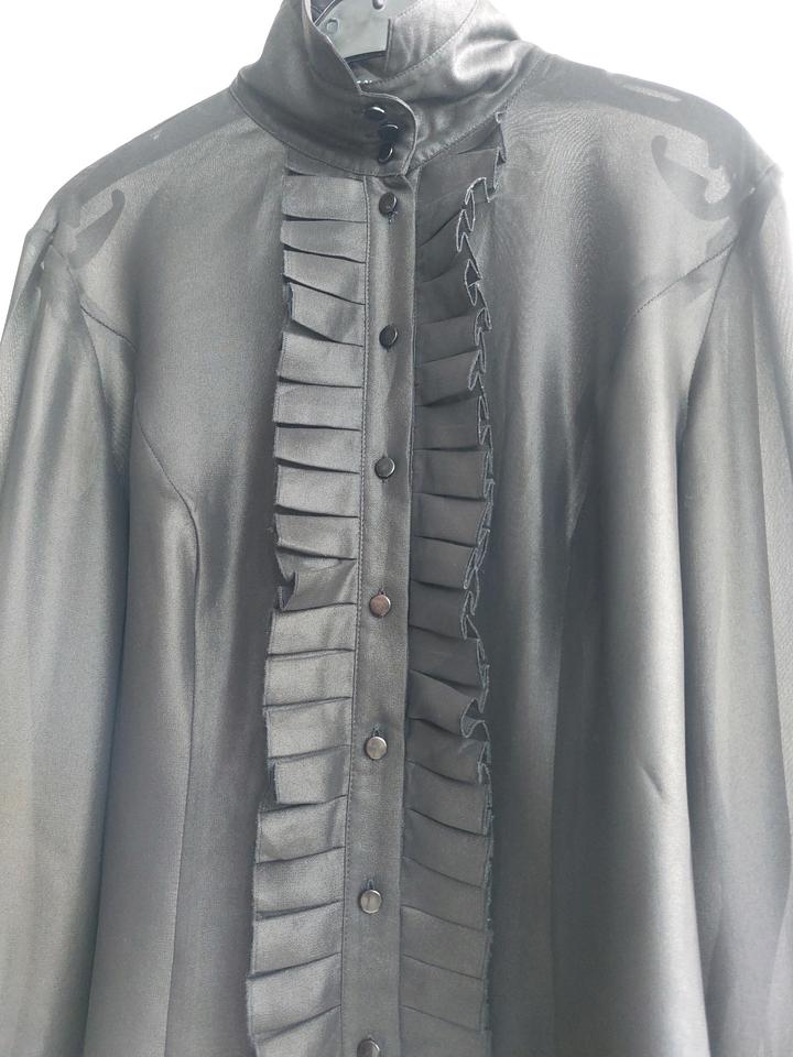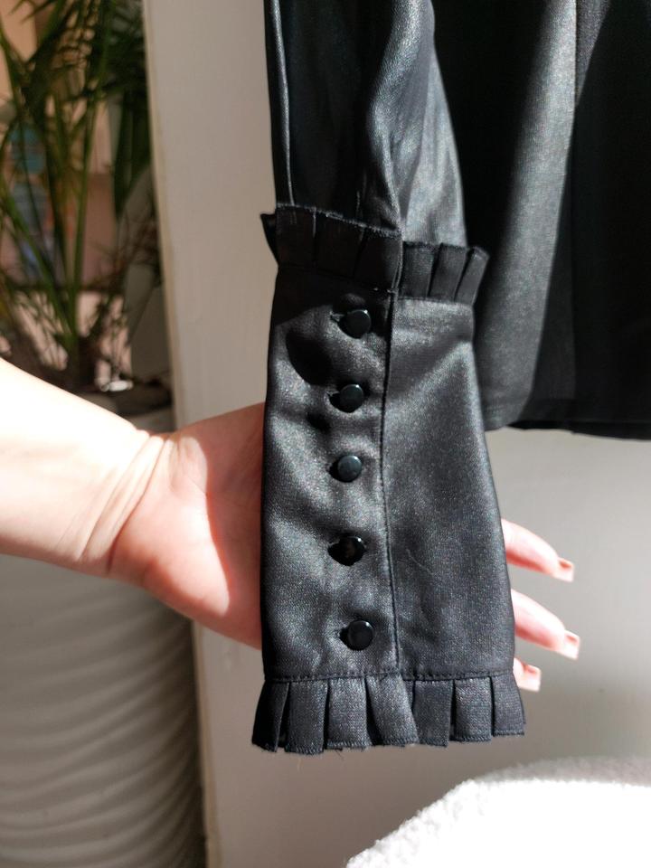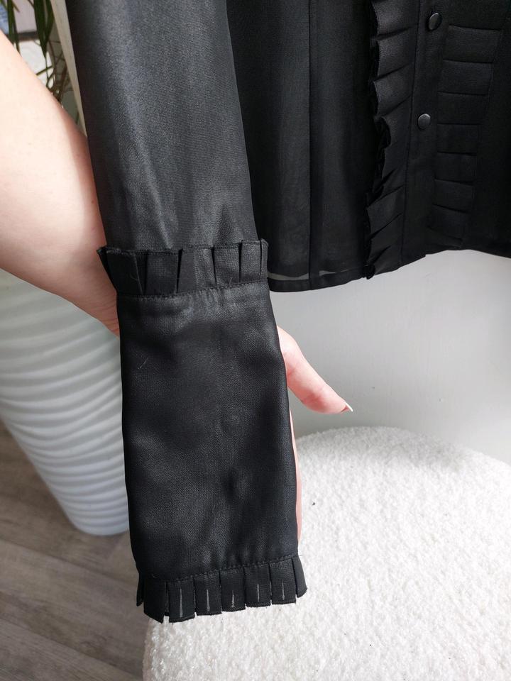 Элегантная блузка Savage с рюшами, состояние отличное, материал 100 % полиэстер, легкий, полупрозрачный, на солнце переливается. Изящные рюши вдоль пуговиц, воротник-стойка, высокие манжеты с отделкой. На миниатюрную девушку 42 размера (xs, s) Артикул: 597806