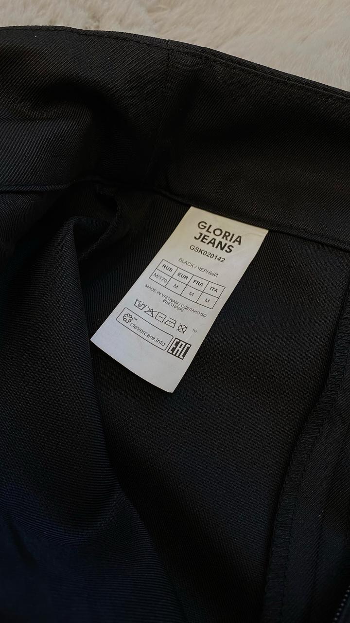 Абсолютно новая базовая юбка черного цвета. Ни разу не надевалась, состояние идеальное (без бумажной бирки). Очень удачный крой А-силуэта с кокетливым разрезом спереди — визуально удлиняет ноги. Детали: • Бренд: Gloria Jeans. • Размер: M (44-46). • Посадка: Классическая, застегивается сзади на скрытую молнию. • Материал: Плотная качественная ткань, держит форму. Точные замеры (в разложенном виде): • Полуобхват талии: 38 см • Полуобхват бедер: 48-49 см • Длина изделия: 42 см Артикул: 597846