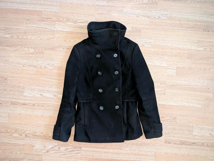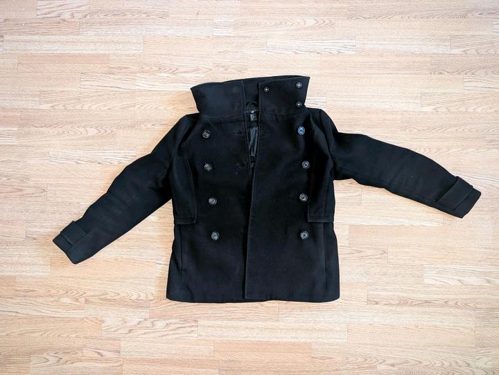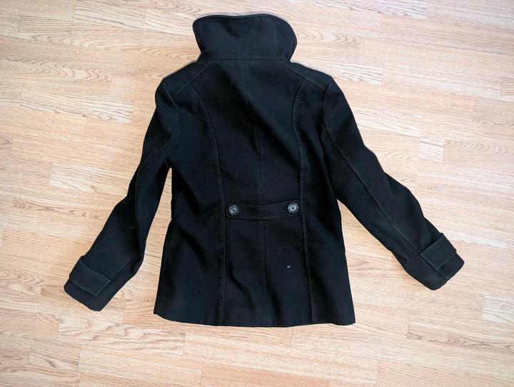 Продам классическое полупальто черного цвета. Строгий двубортный крой.Практичный состав (полиэстер с вискозой), ткань плотная, не скатывается и отлично держит форму Артикул: 597918