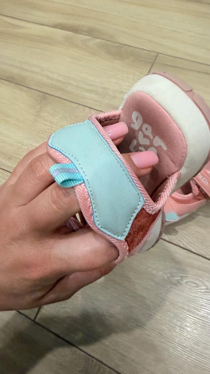 Сандали для девочки, носила только в саду. Очень мягкие и гнущиеся. Качество обуви garvalin многие знают, даже говорить не надо. Состояние идеальное. Все как на фото. Артикул: 598000