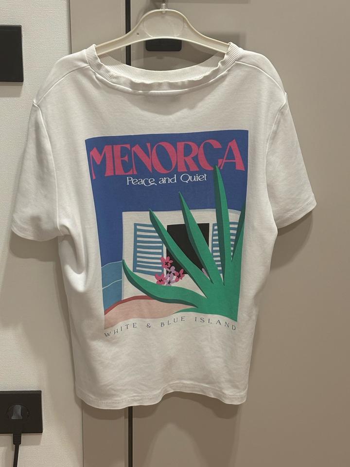 Новая белая футболка с коротким рукавом. Стильный минималистичный принт "Menorca". Качественный хлопковый трикотаж, прямой крой. Отличный базовый вариант на лето. В наличии размер S. В хорошем состоянии ( есть одно незаметное пятнышко, но его можно убрать ) ! Артикул: 598026