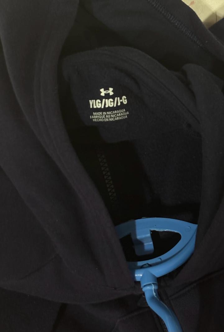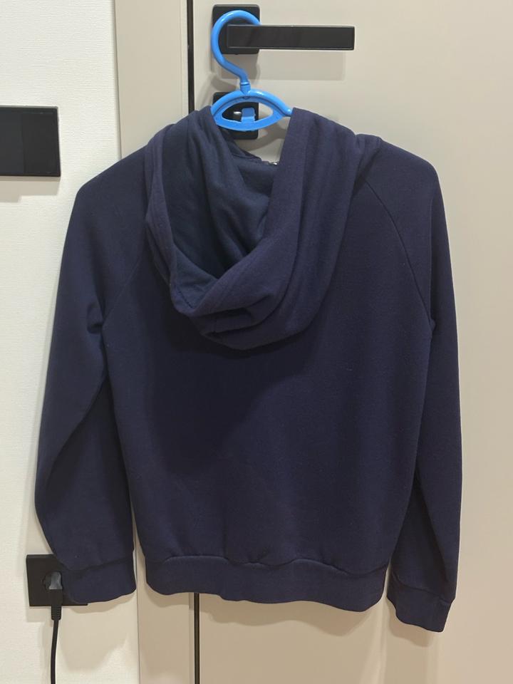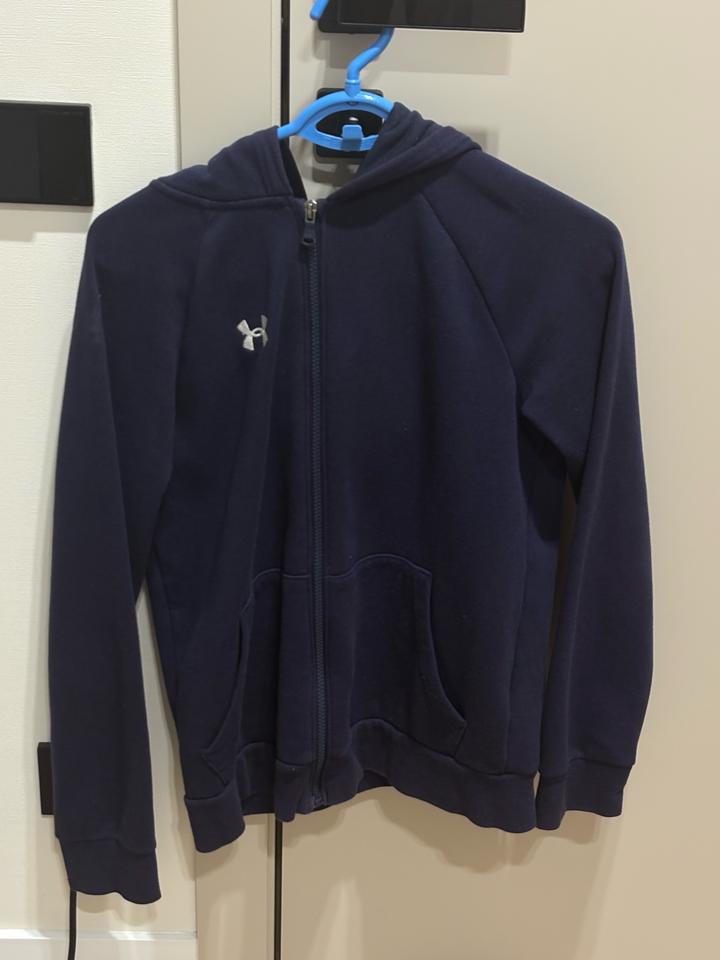 Женское синее худи от Under Armour. Удобная модель на молнии с капюшоном. Классический дизайн, качественный материал. Размер: S. Отличный вариант для тренировок или повседневной носки. Состояние: очень хорошее Артикул: 598073