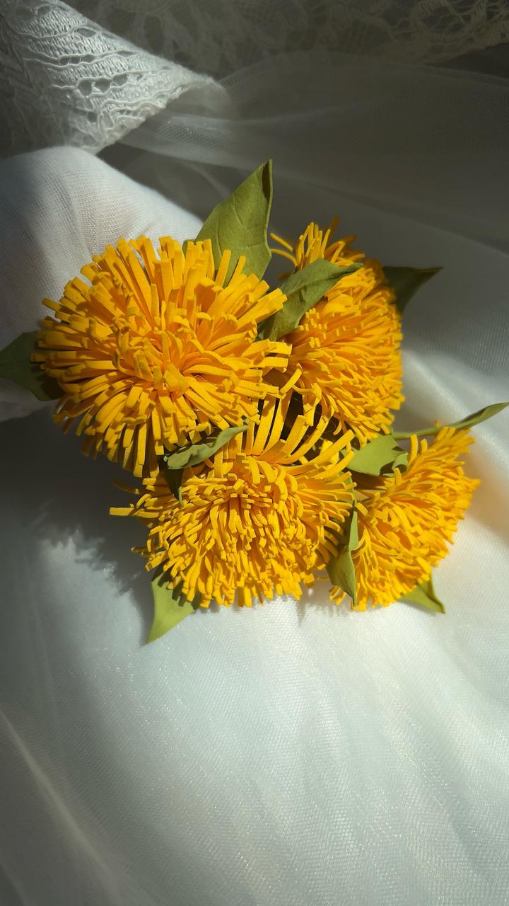 Солнечные резиночки для волос, ручная работа из фоамирана. Размер цветка 6*6 см. Цена за пару 1800 тг. Возможно сделать венок или ободок из таких одуванчиков, пишите в личку Артикул: 598075