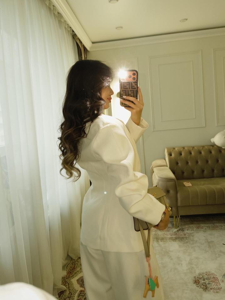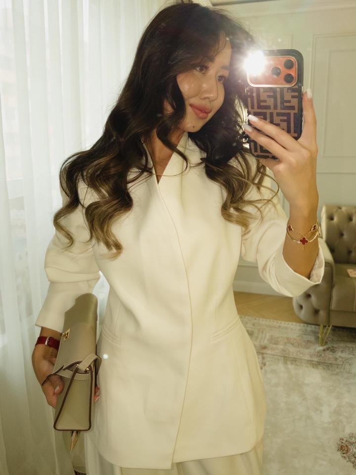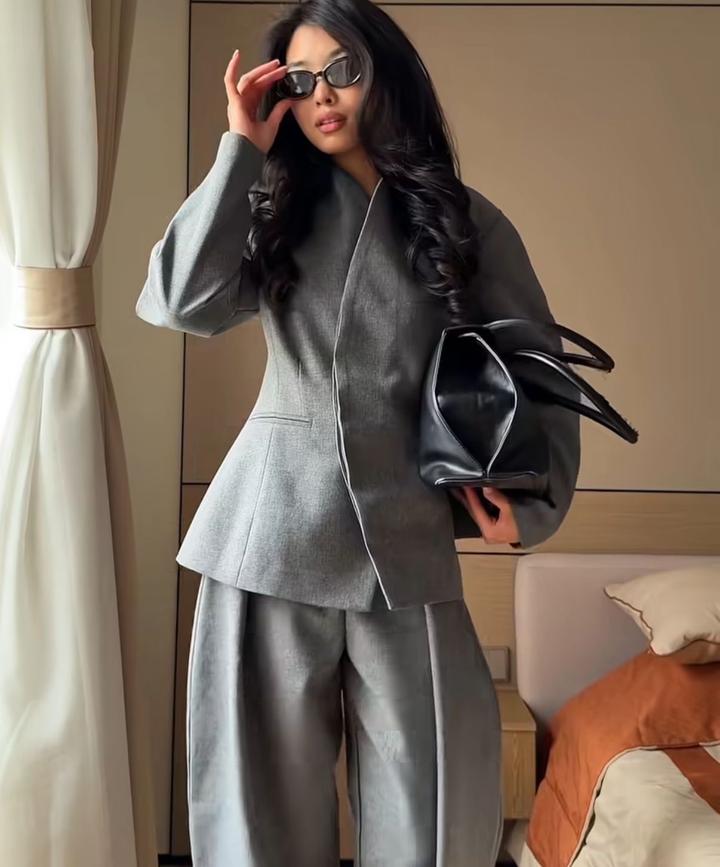 Приталенный пиджак с объемными рукавами и брюки бананS/M