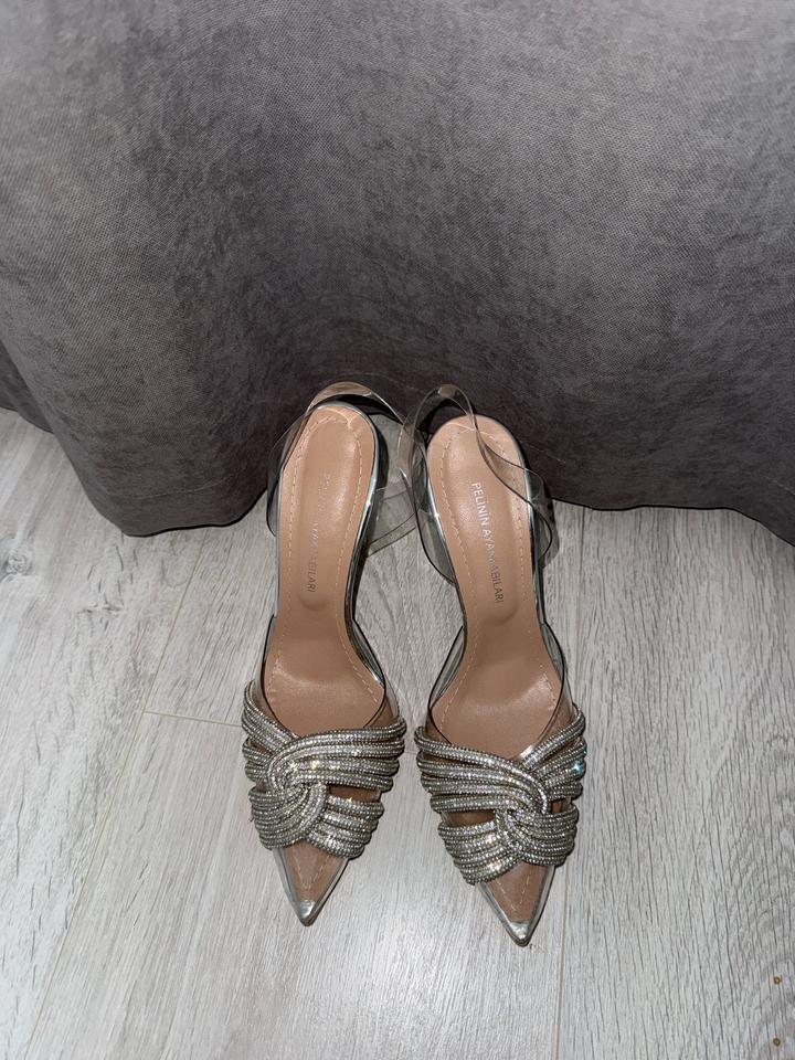 Туфли на каблуке (турецкие), подходят на вечерние мероприятия, выпускные, на что угодно. Очень красивые и изящные, при свете искусственном сверкают. Длина каблука 10 см, размер 40. Артикул: 598132