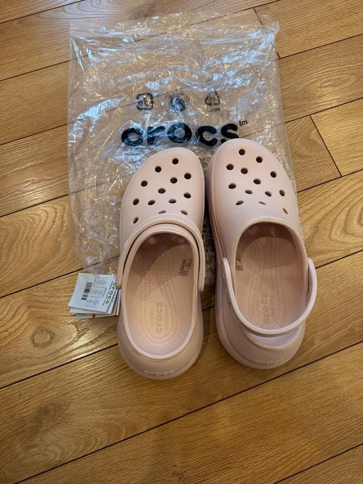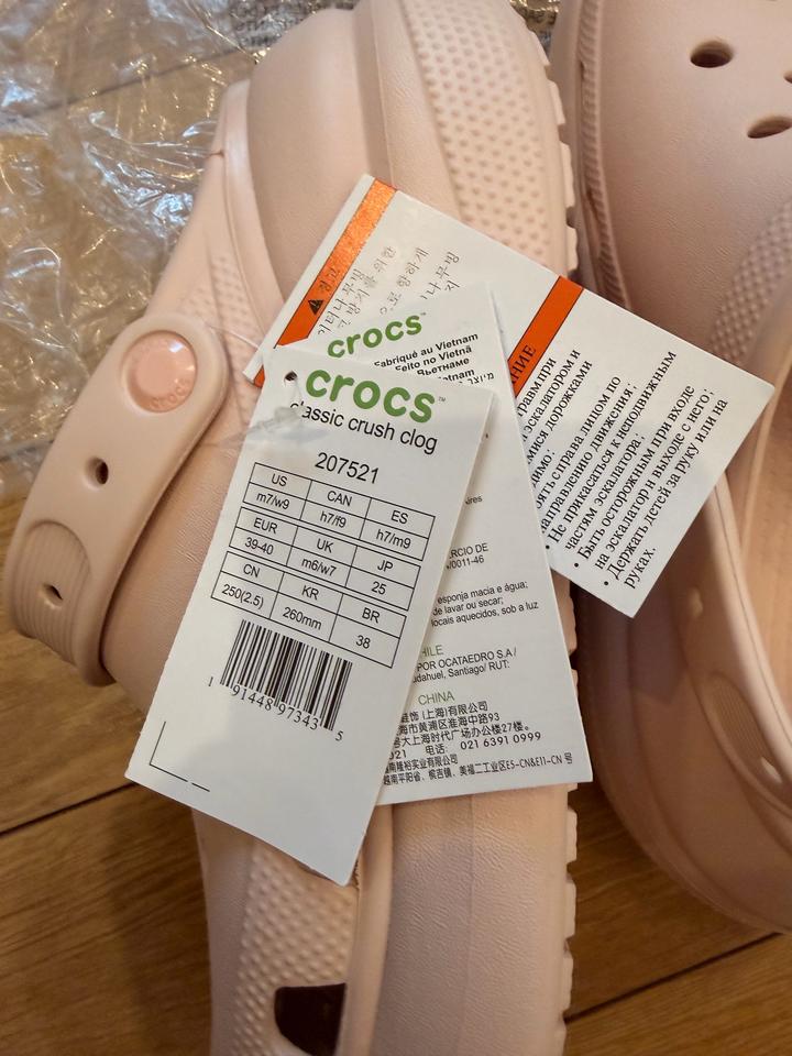 Новые сабо от Crocs. Не подошел размер Красивого пыльнорозового цвета. Брала не у нас, на заказ подруга привезла из вьетнама. К сожалению большие Размер на фото указан. 39-40р Отдаю ниже чем купила Артикул: 598179