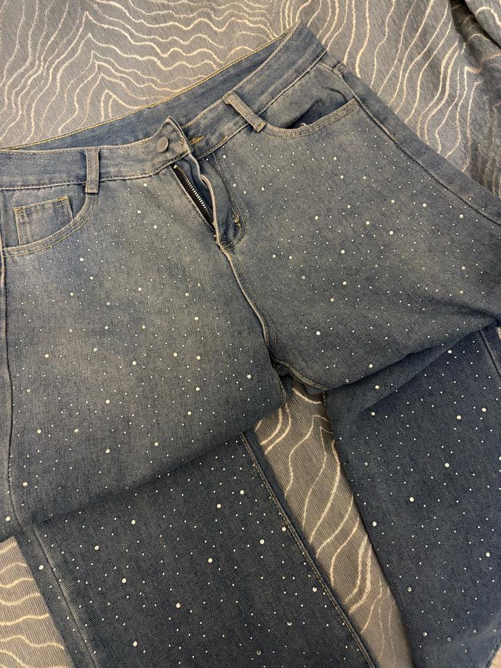 Хорошие джинсы со стразами , удобные на любое время года . Заказали , оказались большими. Стразы не выпадают , очень качественно сделано Артикул: 598180