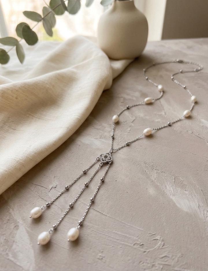 Сотуар-галстук в этно-стиле С натуральным жемчугом Материал латунь покрытие родий Вставки фианиты Не чернеет Упакован в мешочек-пыльник( в котором в дальнейшем вы можете хранить изделие) Артикул: 598183