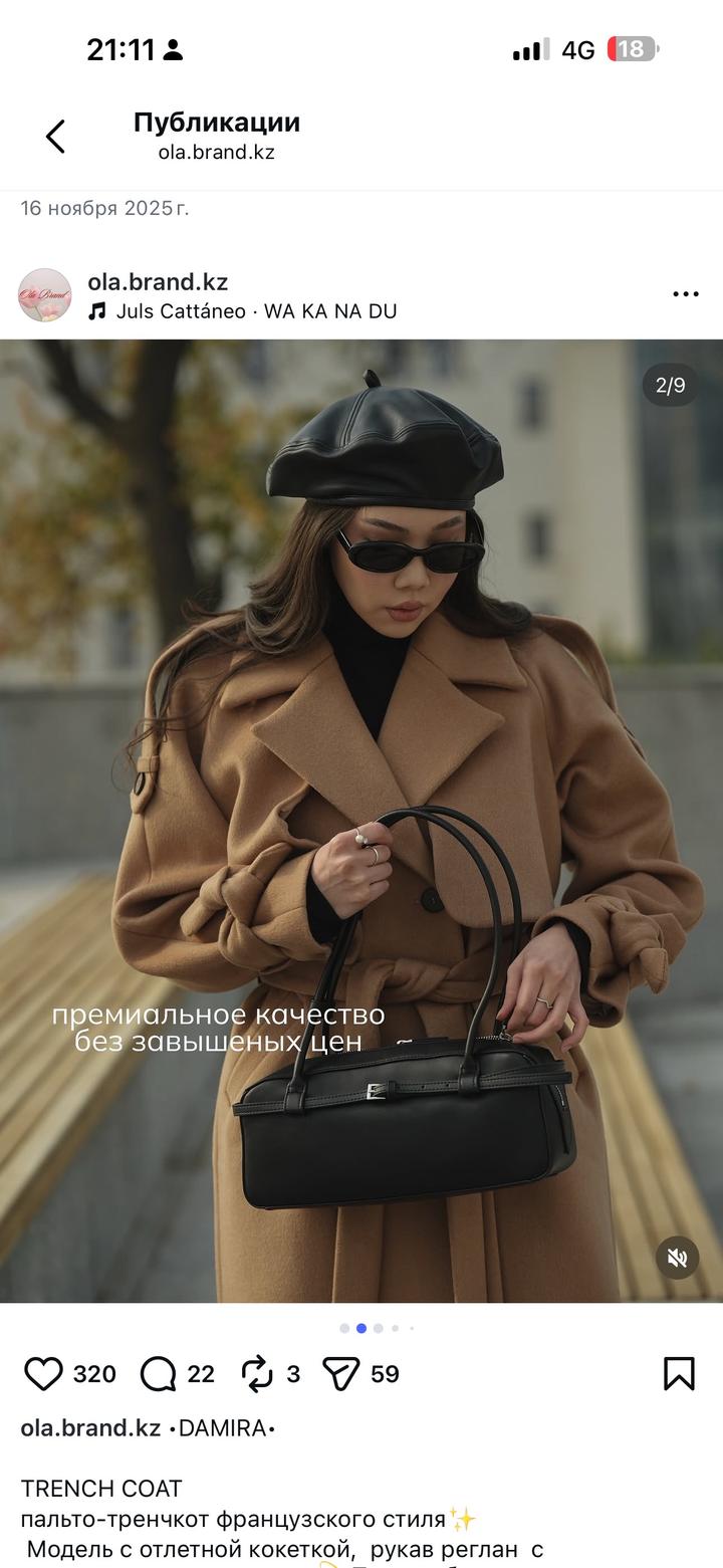 Пальто от Ola.brand.kz. состав: итальянский кашемир Артикул: 598234