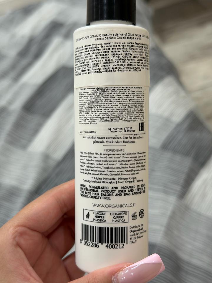 пользовалась 2-3 раза Спрей ORGANICALS помогает придать желаемую форму укладке и объём волосам, не утяжеляя их. Средство с натуральными экстрактами и маслами подходит для укладки любого типа. Мягкая формула способствует ускорению сушки волос и защищает их от воздействия фена, выпрямителя или плойки. Спрей идеален для тонких, ломких и утративших объём волос. Артикул: 598350