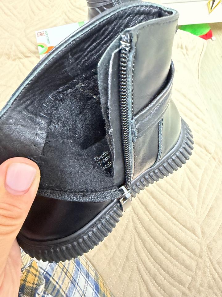 Сапожки из натуральной кожи, с тонким начесом. На теплую зиму. Носили только 1 раз для фотосессии в черном платье. Состояние новых. Супинатор, натуральная кожа Артикул: 598494