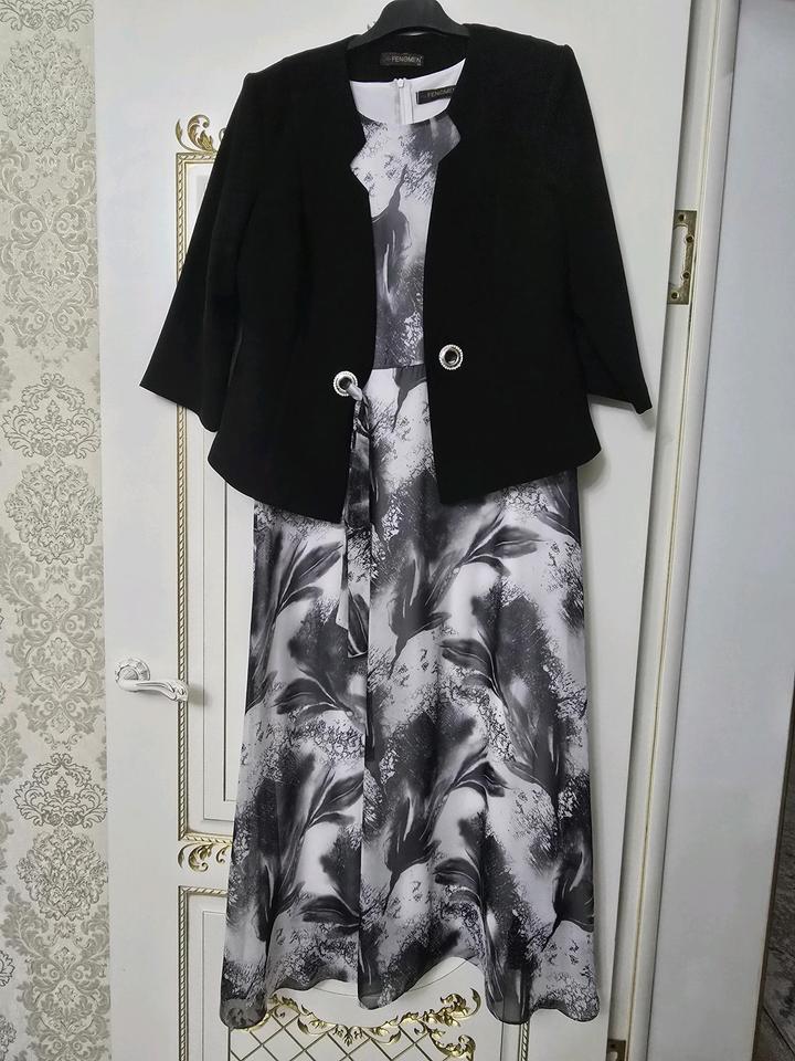 Элегантный комплект: платье с эффектным чёрно-белым принтом + лаконичный жакет. Идеально подойдёт как для работы, так и для мероприятий. 🖤 Универсальный чёрно-белый дизайн — всегда в моде 🖤 Жакет делает образ более строгим и завершённым 🖤 Лёгкая струящаяся ткань красиво садится по фигуре 🖤 Можно носить как комплект или по отдельности Идеально для: ✔ офиса ✔ встреч и мероприятий ✔ повседневной элегантности Носила 2 раза Артикул: 598558