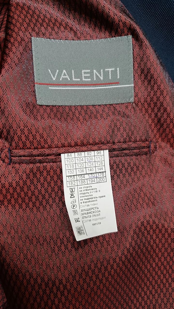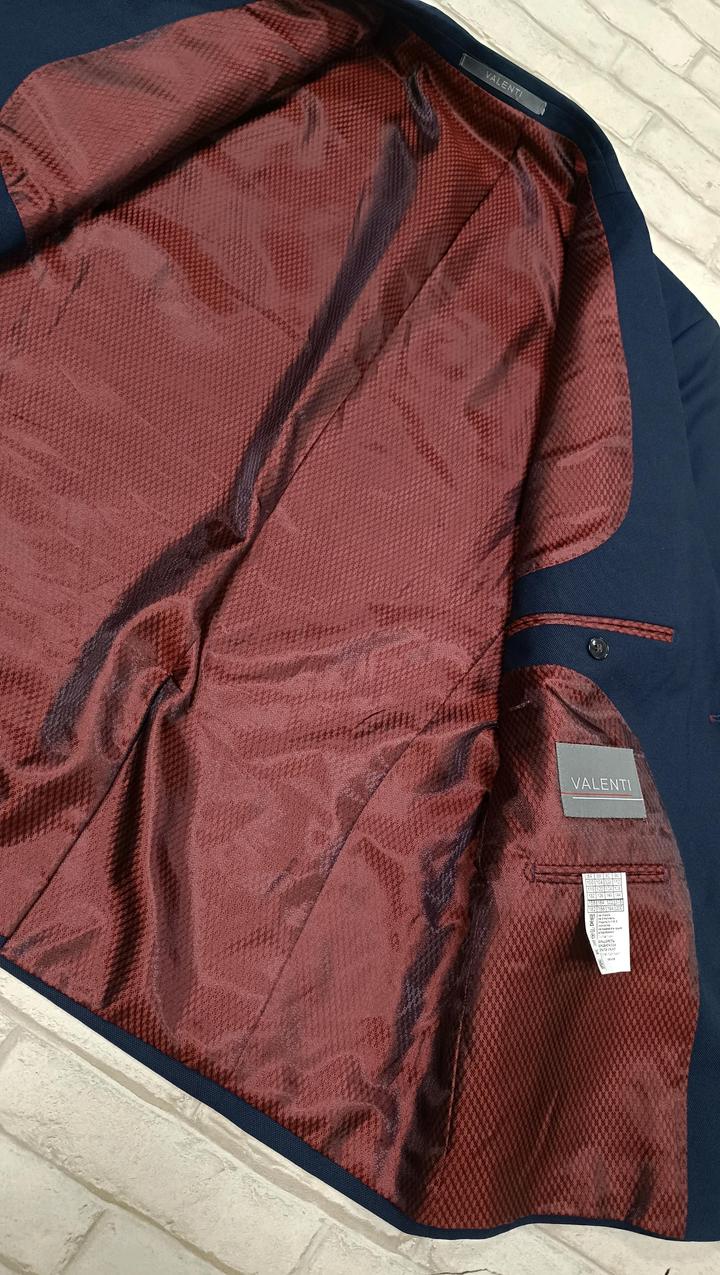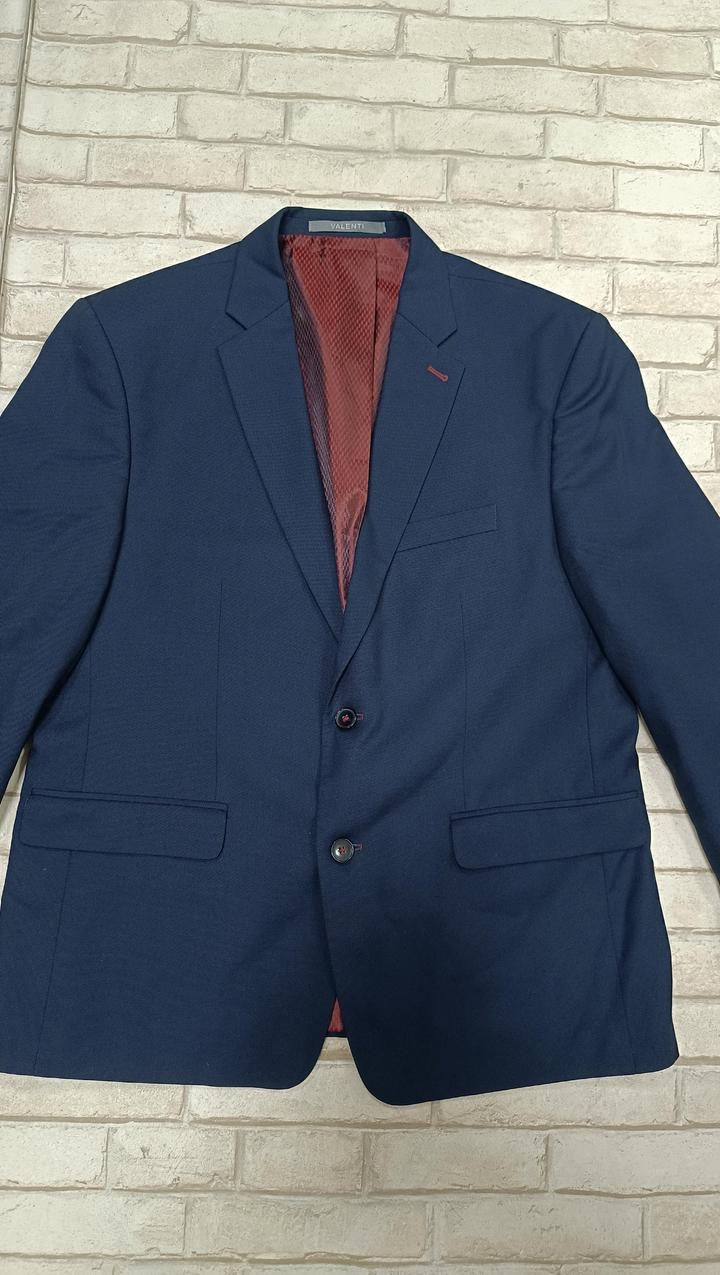 Синий мужской пиджак от российского бренда Valenti.В отличном состоянии. 10/10. 30% - шерсть, 30% - вискоза, 37% полиэстер, 3% - эластан. Артикул: 598692