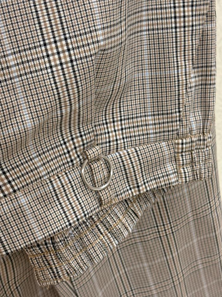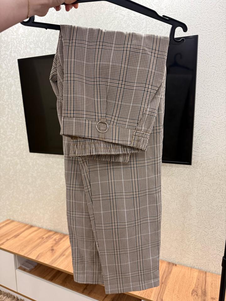 Посадка идеальная - штаны чуть завышены, за счёт этого животик скрыт, прямого, свободного кроя. Подойдут на М (при фигуре песочные часы/груша), и L (на яблоко). Так же пиджак - на М будет чуть свободный, на L по фигуре. Не маломерит, поэтому на S будет большим - не ношу именно по этой причине, похудела. Материал практически не мнется, на фотографии без отпаривания, лежал на полке с осени. По длине подойдет на девушку до 169см максимум. Артикул: 598767