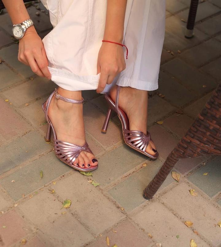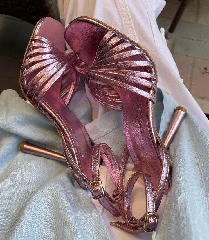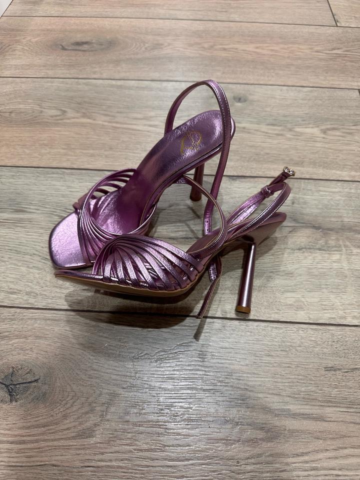 Босоножки Aquamarine(Турция), цвета розовый металлик, кожа, 39 размер, очень красивые. Каблук 7,5-8см. Артикул: 598819