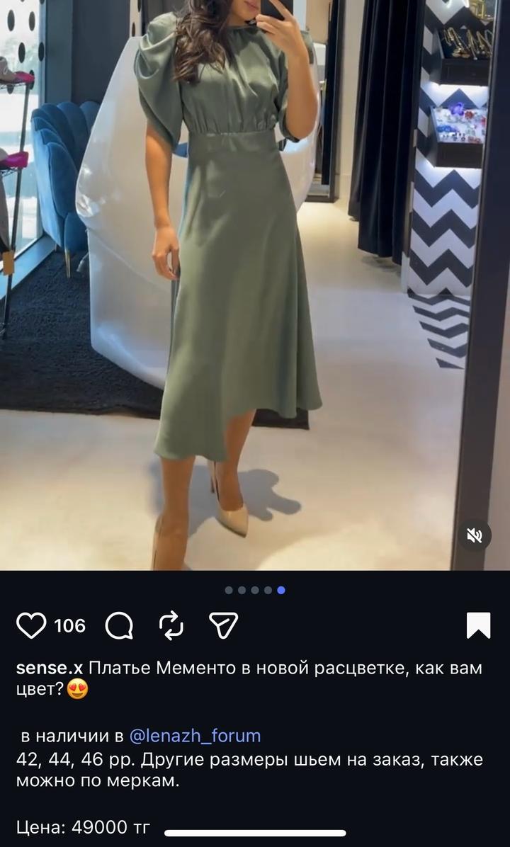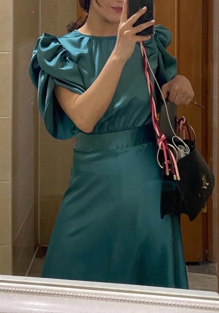 Атласное платье Казахстанского бренда Sense.X Размер S, 42-44. Надевала один раз, отличного качества, приятный материал. Артикул: 598830