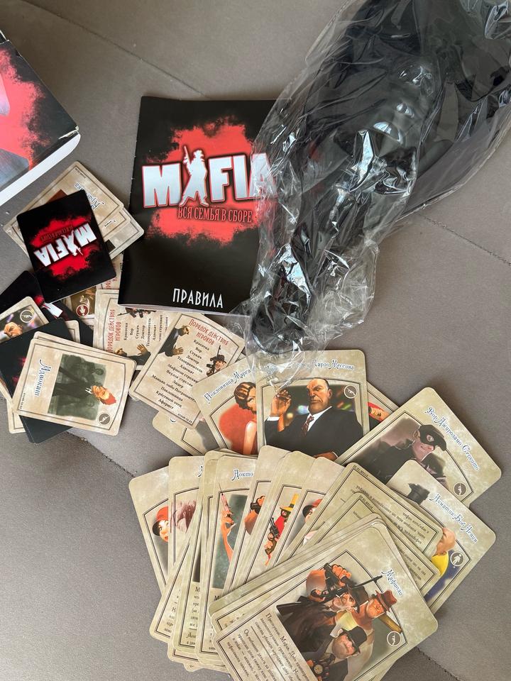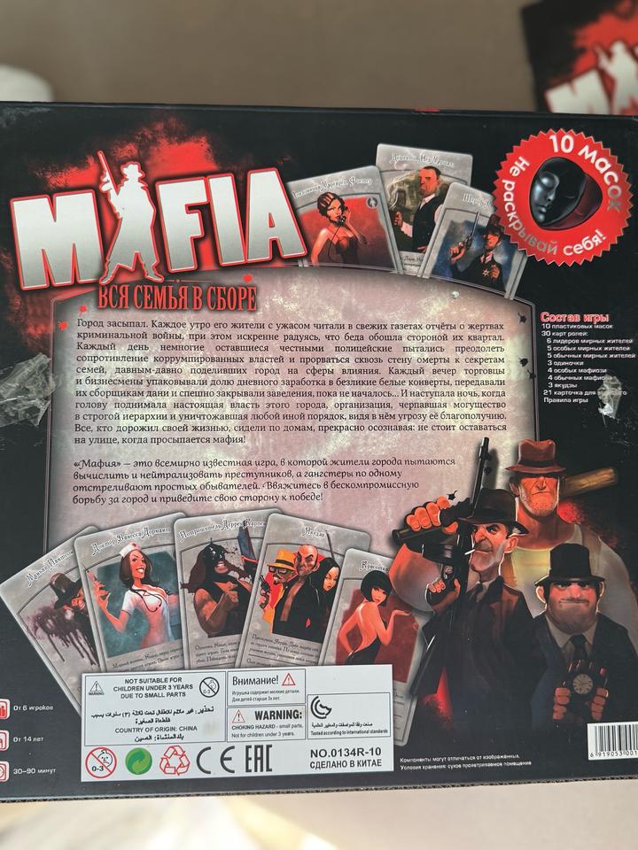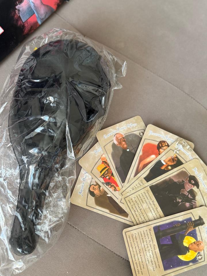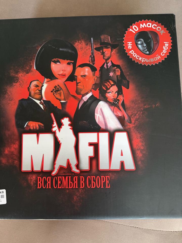 Так и не пользовались, новая, все в комплекте как указано на коробке, 10 масок, 21 карта с ролями ,21 карта для ведущего, инструкция Артикул: 598868