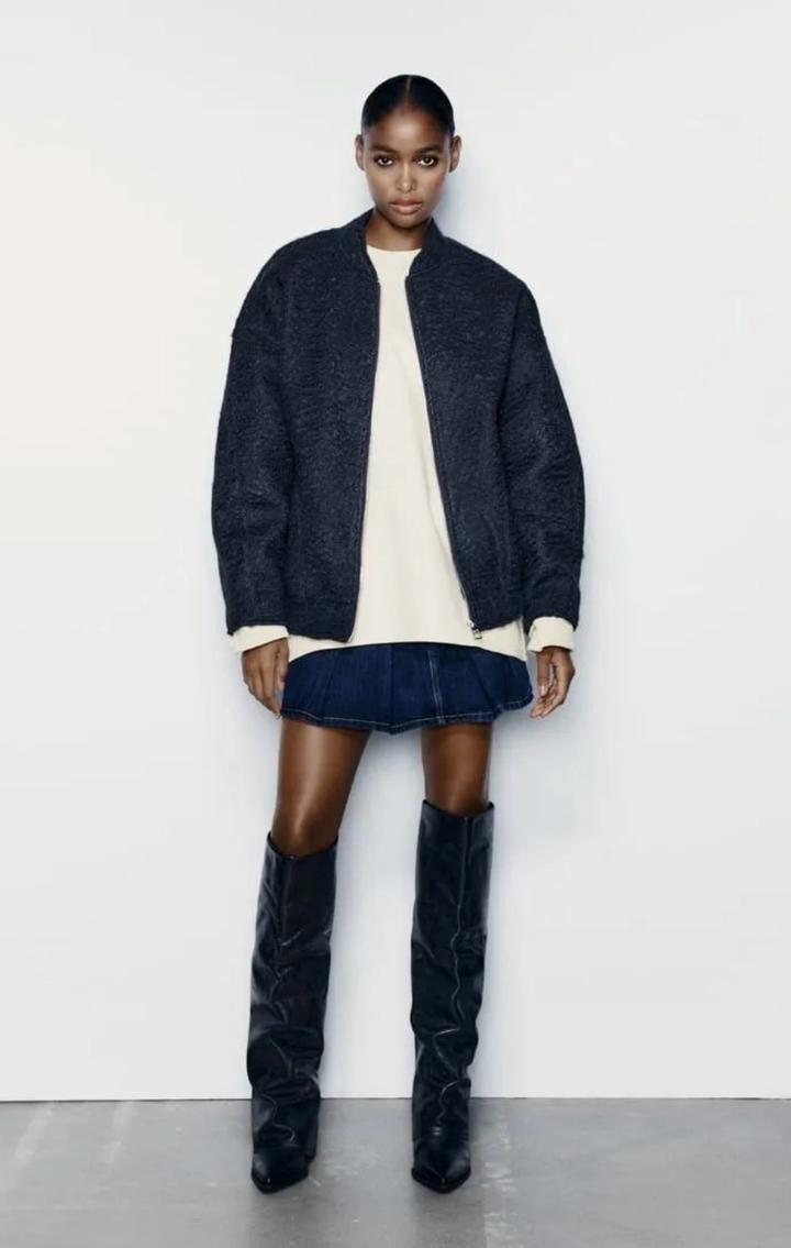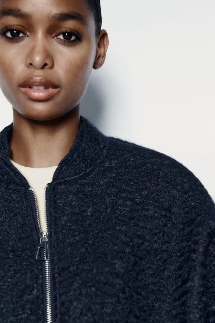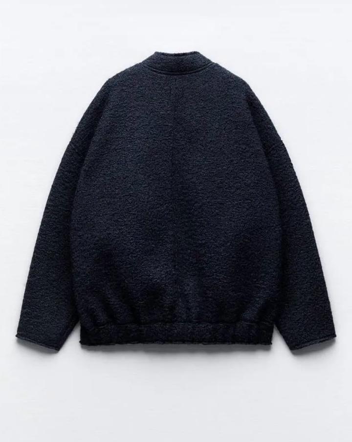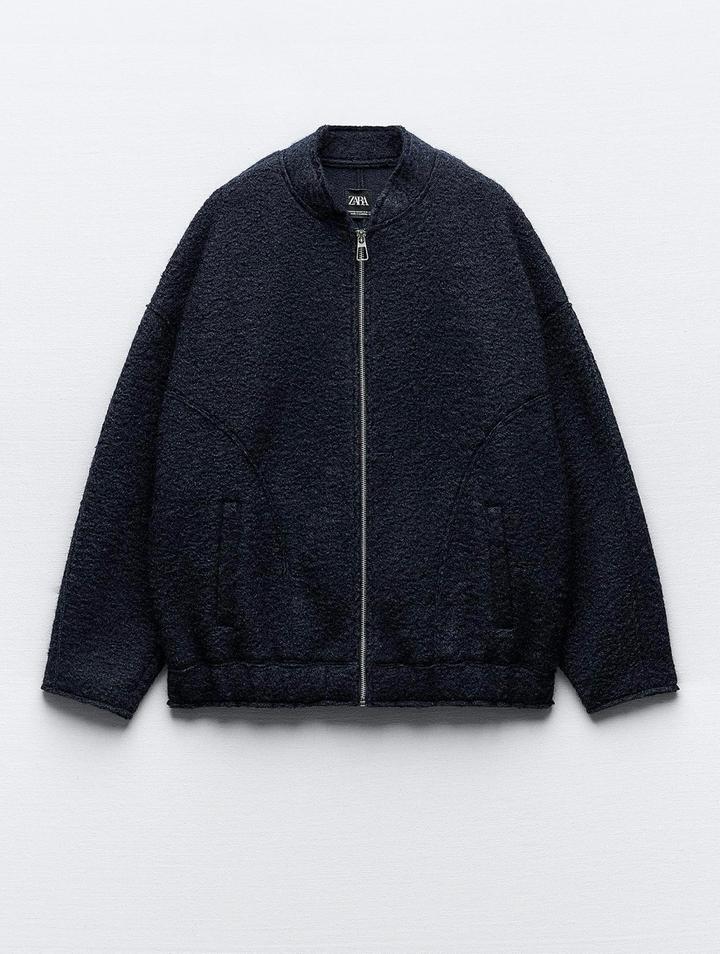 Бомбер из пряжи букле. Модель оверсайз. Размер скорее L. Цвет - тёмно-синий. Новый с биркой. Оригинал. Приобретала за 27 990 тг. Артикул: 598877