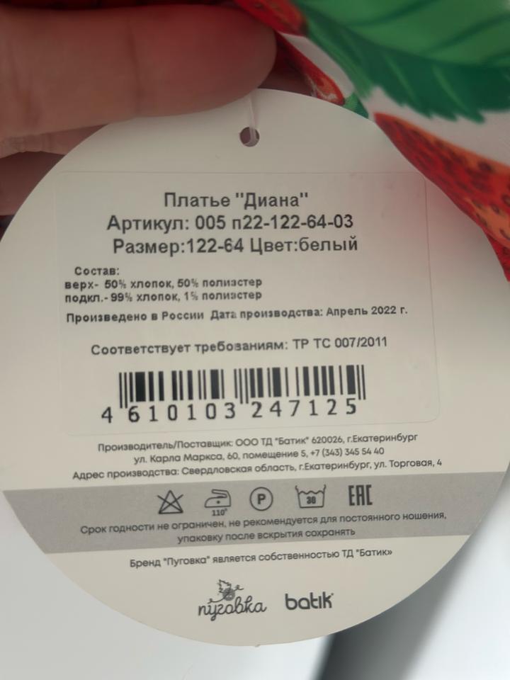 Нарядное платье от фирмы Пуговка Батик. На 6-7 лет. Пышный подьюбник. Производство Россия. Артикул: 598943
