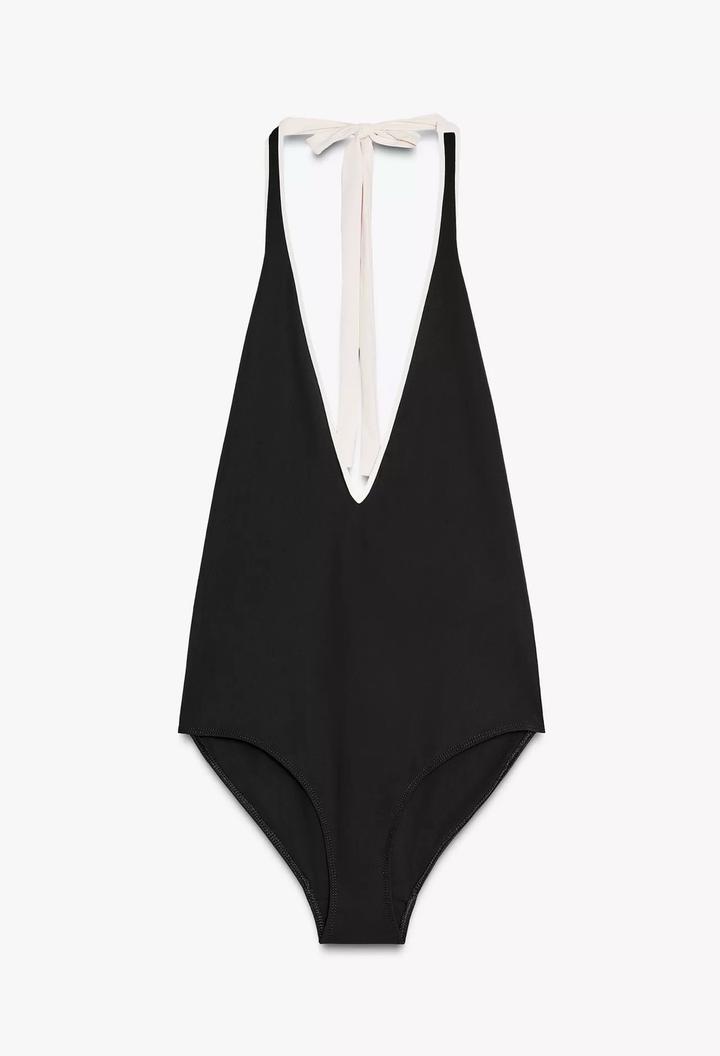 Новый купальник 🖤 открытая спина, вырез халтер с молочной окантовкой🖤 размер L, думаю подойдет и на М размер 🖤 Артикул: 599147