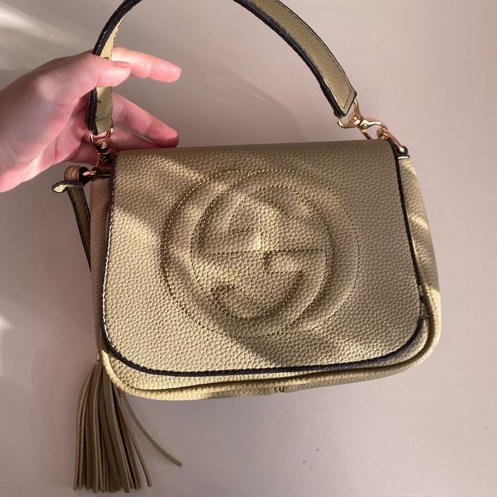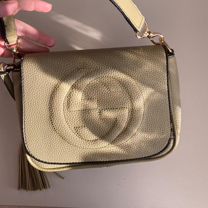 Небольшая сумка, покупала в Турции. Качественная фурнитура, приятный матовый зеленый цвет. Приятная наощупь. Носила на пару мероприятий. Вместительная, не узкая, есть длинный ремешок. Артикул: 599148