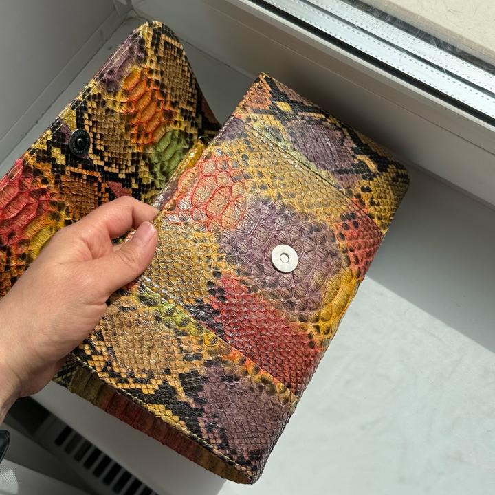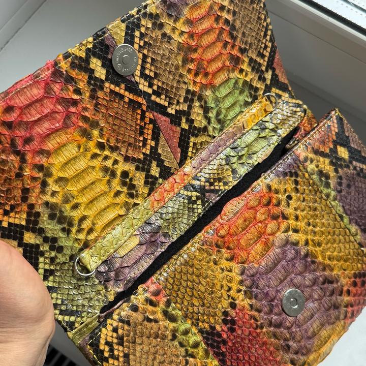 Сумка натуральный питон. Ни разу не выходила. Очень красивый окрас. Производство Индонезия, Бали. Внутри замша. Выглядит дорого. Подходит под все. Особенно на лето удобно. В жизни намного круче выглядит. Просто не мой стиль Артикул: 599153