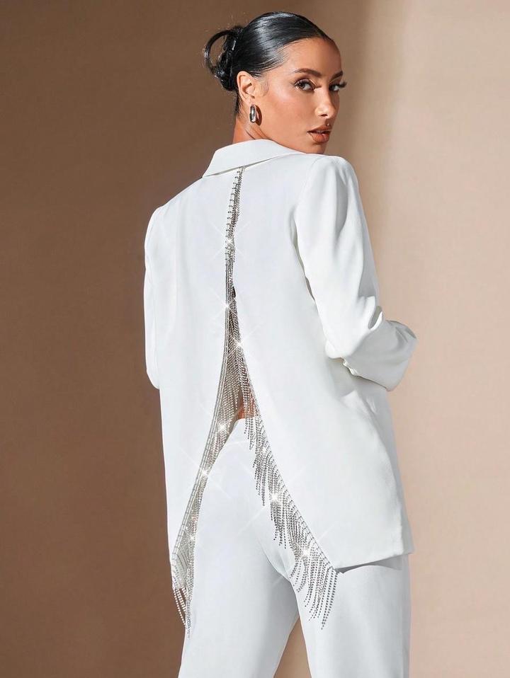 Белый брючный костюм со стразами на спинеS/M