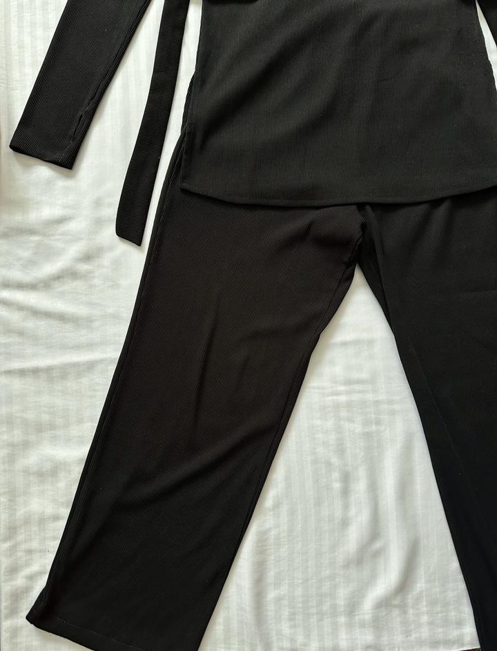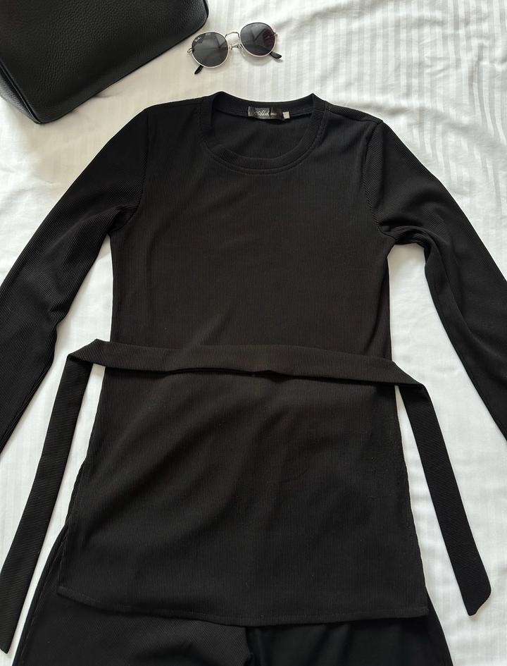 Женская двойка с брюками, черная — размер S Стильная и удобная двойка: удлиненный верх и прямые брюки. На рукавах — разрезы под большой палец для стильного акцента и комфорта. Идеально на рост 160 см. Размер S. Легкая и приятная к телу ткань — отлично подойдёт как для повседневной носки, так и для выхода. Артикул: 599240