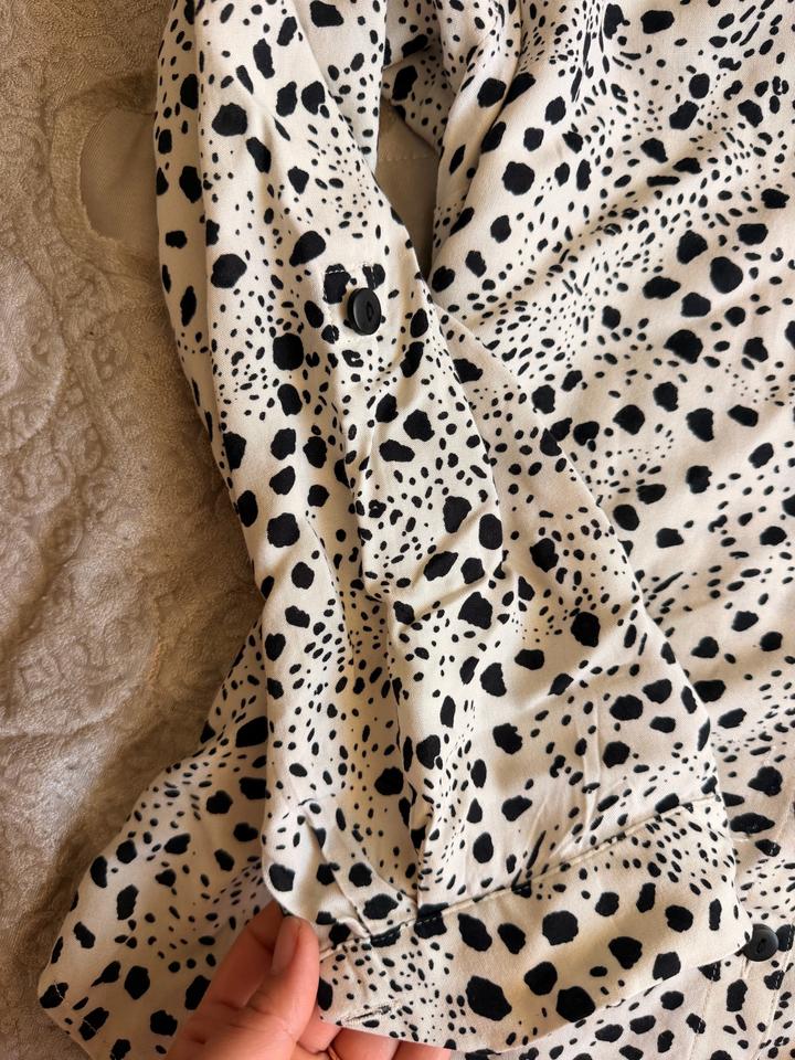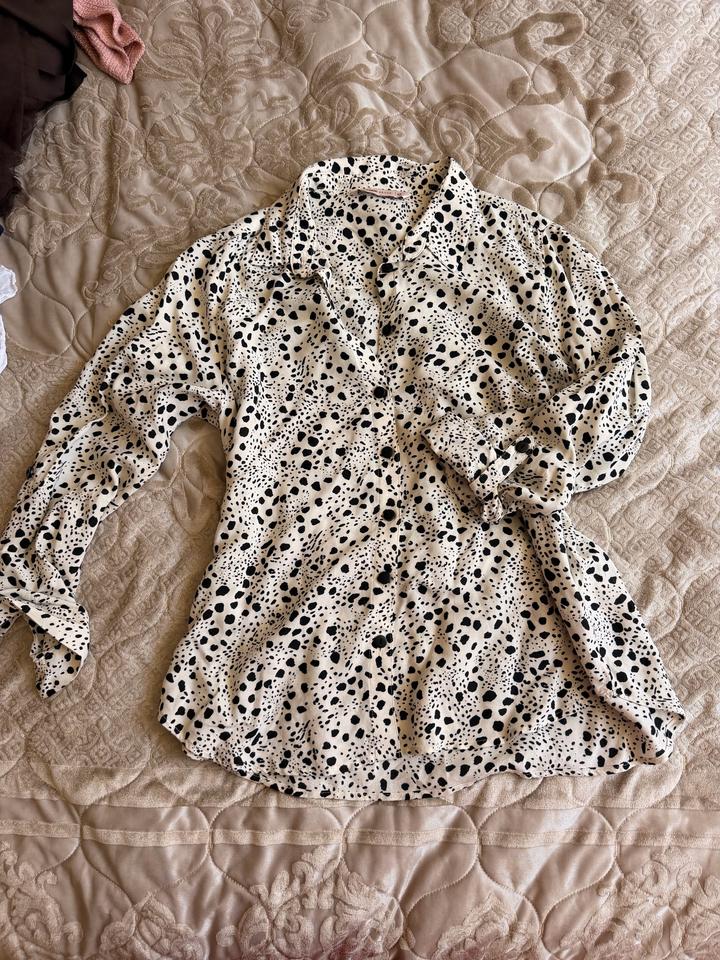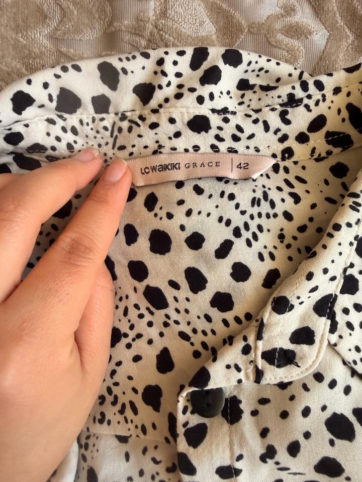 🖤 Стильная рубашка с принтом (LC Waikiki, 42) Эффектная рубашка в трендовом чёрно-белом принте — сразу делает образ стильным ✨ 🌿 Лёгкая, приятная к телу ткань ✨ Свободный крой (на фото немного собрана в талии для формы) ✨ Подойдёт на размер 42 и может сесть как лёгкий oversize ✨ Классический воротник и застёжка на пуговицы ✨ Длинный рукав — можно носить как есть или подворачивать 💫 Отлично смотрится с джинсами, брюками или юбкой — универсальная и очень удобная вещь 👌 Артикул: 599257