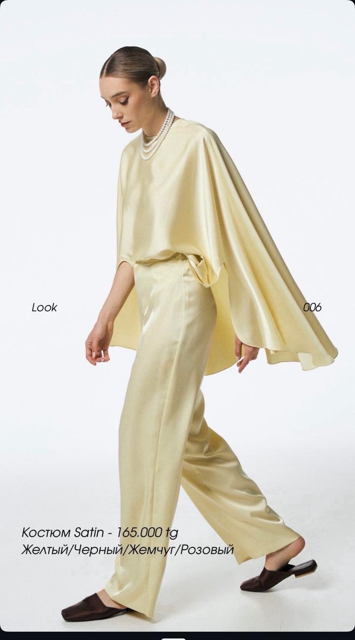 Кейп выполнен в виде асимметричной накидки с широкими струящимися линиями. Круглый вырез горловины придает лаконичность. Брюки прямого свободного кроя из гладкой ткани с высокой посадкой , подчеркивает линию талии. Ткань итальянский кади. Артикул: 599276
