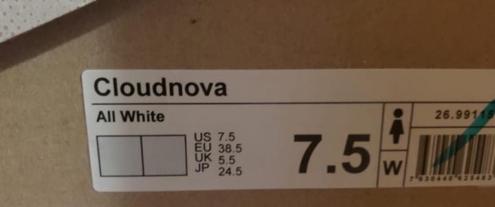 Кроссовки On, модель Cloudnova, Новые. Размер: US:7.5; EU 38.5; UK: 5.5. По стельке 25.5 см. Оригинал. Очень удобные, подходят на каждый день/для тренировок. Без дефектов. Артикул: 599292