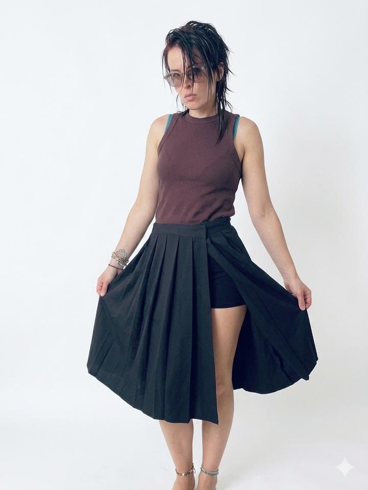 Миди юбка в складку Collusion. M-L. 46-48 Эта вещь — настоящая находка для тех, кто ценит эстетику Y2K и гранж-стиль. Юбка-шорты от культового бренда Collusion сочетает в себе визуальную легкость плиссированной юбки и абсолютную свободу движений, которую дают встроенные шорты. Оригинальный крой с разрезом делает силуэт динамичным и интересным. Это готовый акцент для вашего образа. Она выглядит строго и в то же время дерзко -идеально для тех, кто любит экспериментировать. В отличном состоянии. Артикул: 599307