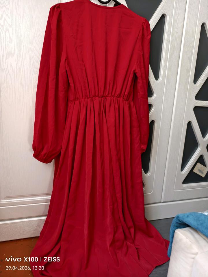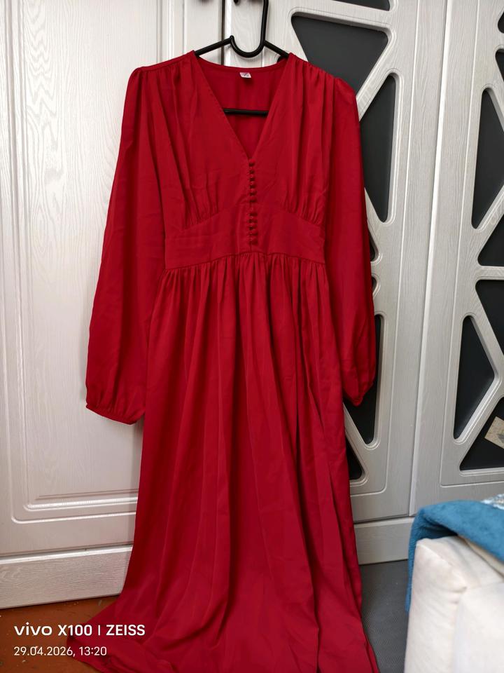 Платье красное на пуговицах по переду, до талии. Длина ниже колена,сзади на резинке. Надевала 1 раз на мероприятие Артикул: 599323