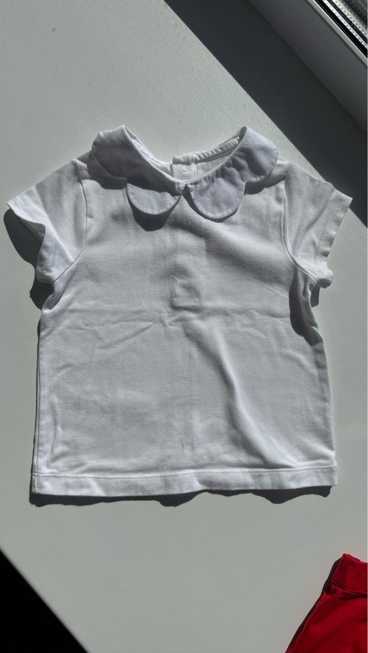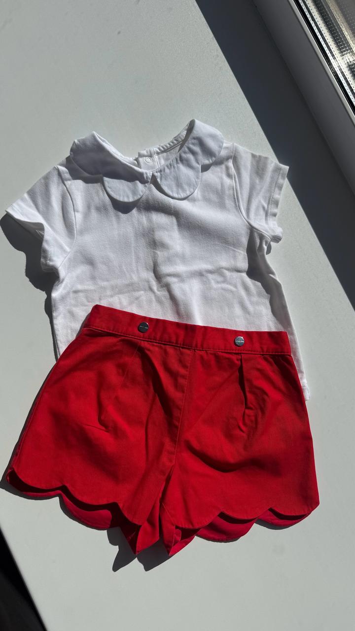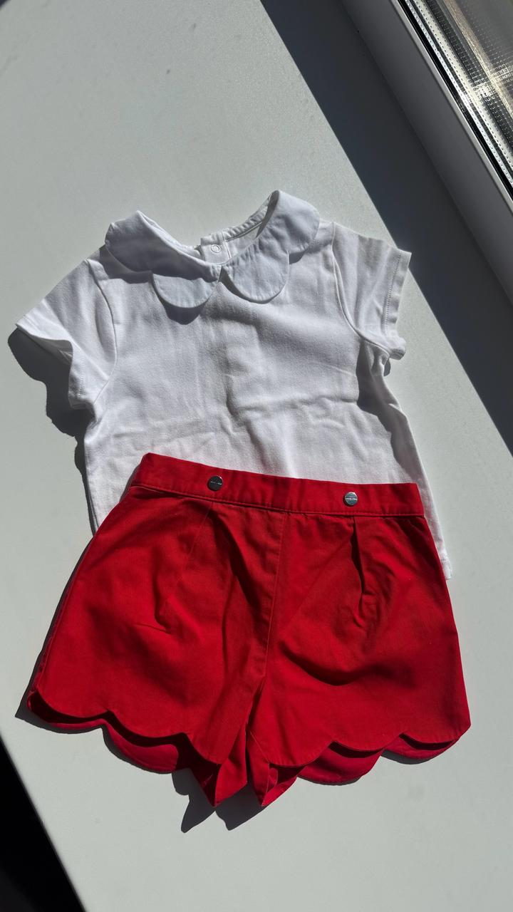 Футболка с воротником и шорты из 100% хлопка на 2года. Футболка без пятен, идеально белая, шорты приятного красного цвета без повреждений ткани и цвета. Брала за $100 Артикул: 599328