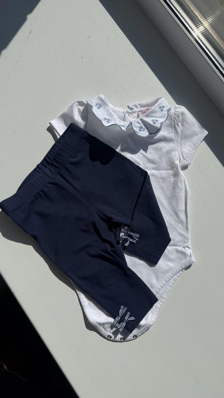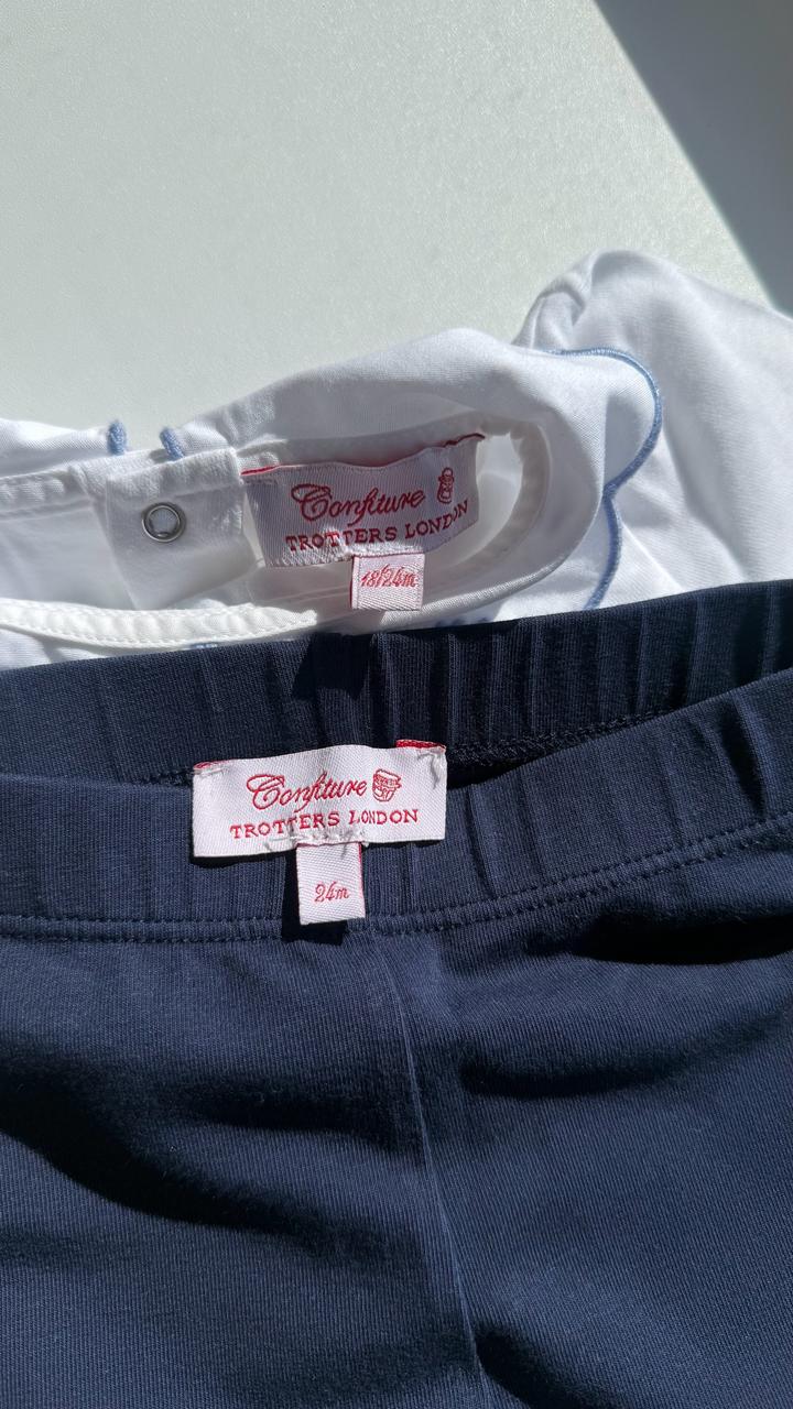 Двойка английского бренда trotters. Бодик идеально белый, чистый, без пятен, из приятной к телу, мягкого хлопка. Бриджи тоже чистые, без пятен и из мягкого хлопка. Родной размер указан на бирке, но все зависит от телосложения ребенка. Моя дочь была пухлой в 9мес и идеально подошло, носили до 1,5лет, потому что дальше начала вытягиваться в рост. Брали за £60-65 Артикул: 599344