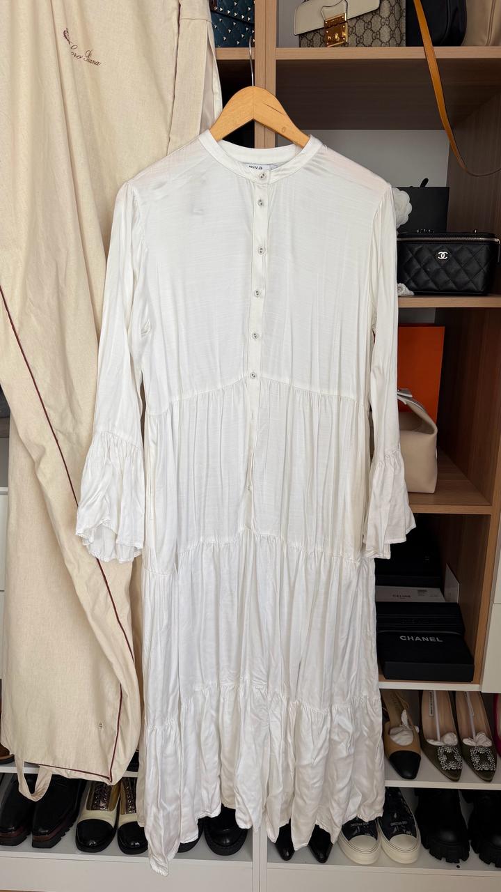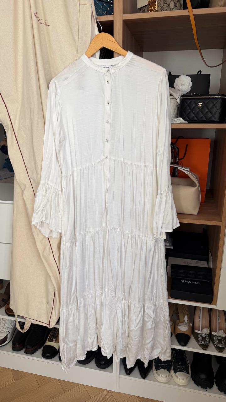 закрытое белое платье на 44/46 есть белый подклад длинное закрытвает щиколотки куплен в дубай очень красивое летящее платье не просвечивает и на пляж будет классно 100% вискоза подклад достаточно длинный еще регулируется Артикул: 599372