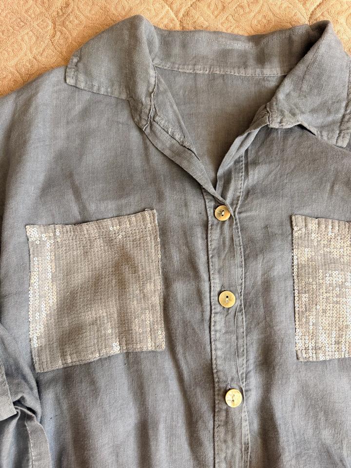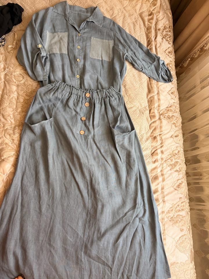 Нежный casual с дорогим звучанием 💙 Комплект: блузка + юбка из лёгкой натуральной ткани. Мягкая резинка на талии — комфортно садится и красиво подчёркивает фигуру. Деликатный блеск пайеток + спокойный оттенок = стиль без усилий. Состояние отличное ✨ Подойдет 44-48 Артикул: 599424