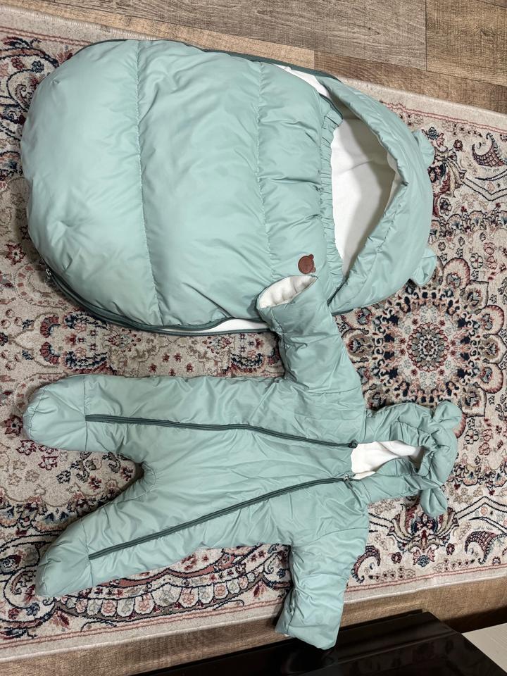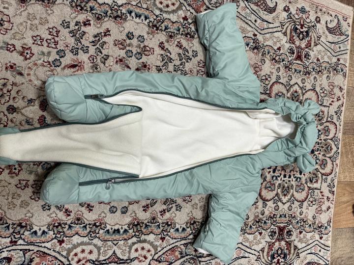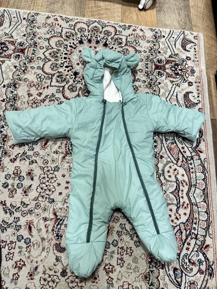 Бирюзовый комбинезон трансформер Подходит как для мальчика, так и девочки от 0-3 мес. Состояние хорошее. Можно использовать вместе и по отдельности. Сезон: осень-зима. Мы одевали комбинезон и ранней весной. Рукава можно подвернуть и ручки будут спрятаны Артикул: 599449