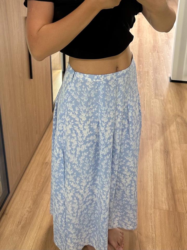 Бело-голубая юбка в пол, с двумя одинаковыми вырезами по бокам, супер легкая, на замке, летом супер Артикул: 599481