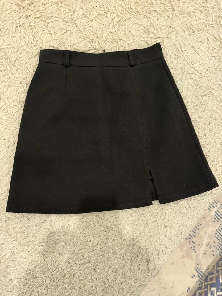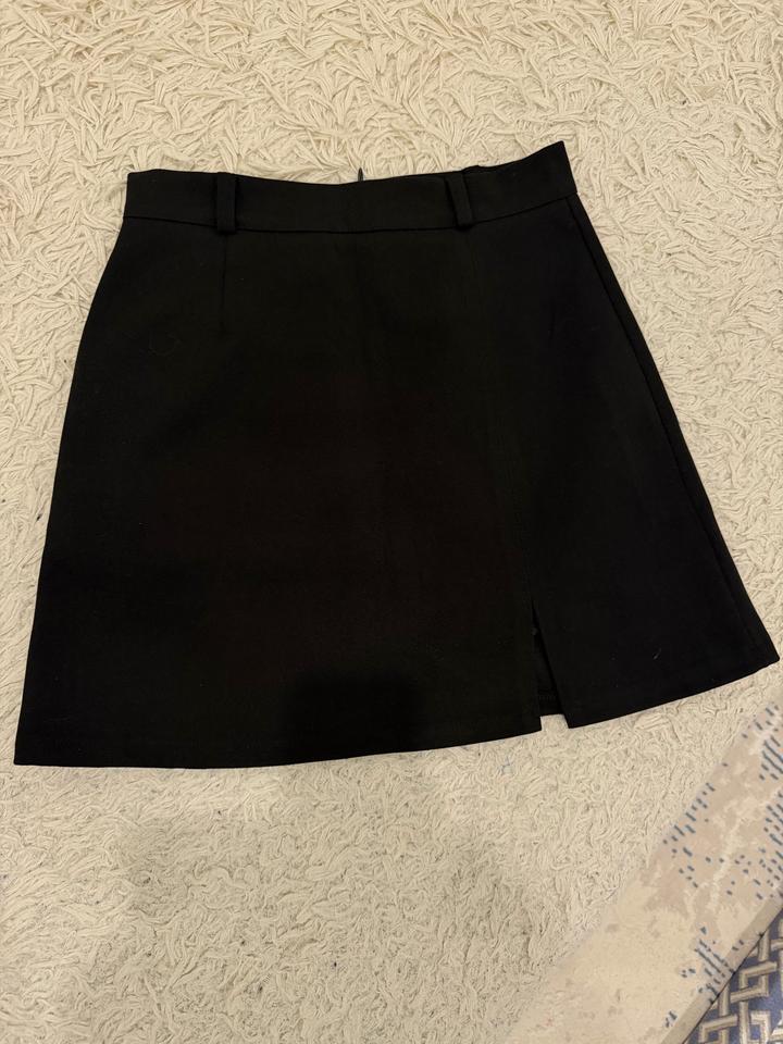 Черная мини-юбка с небольшим разрезом, приятная ткань. Надета 1 раз на фотосессию Артикул: 599512
