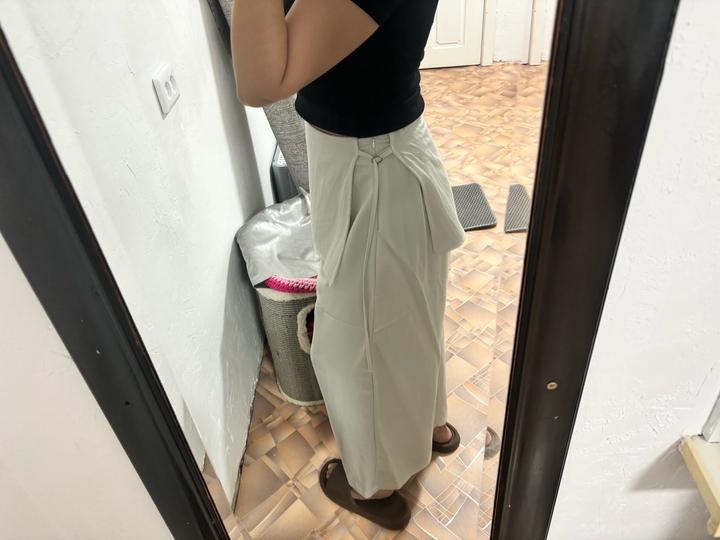 Юбка с брюками идут слитно. Ткань вообще не просвечивает. Напоминает лен + полиэстер. На лето/весну вообще прекрасно. Очень легкие, но при этом ткань плотная Размер S/M Артикул: 600297