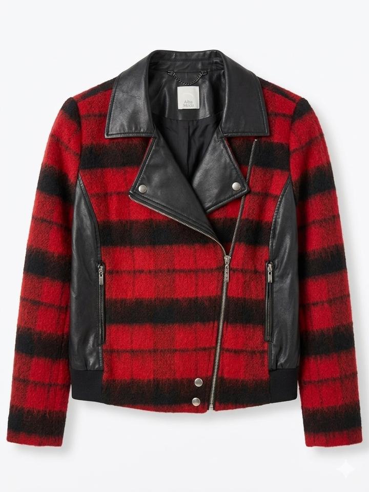 🖤 Яркая байкерская куртка: Теплая шерсть и дерзкий дизайн! ❤️M