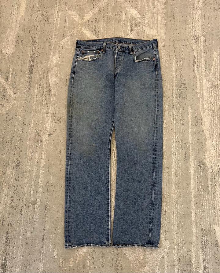 Levi’s 501 distressed mud jeans cond: at photo size: длинна 104 полупояс 42 выход 20 Артикул: 600644