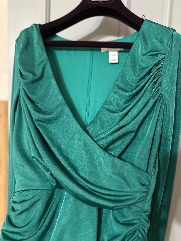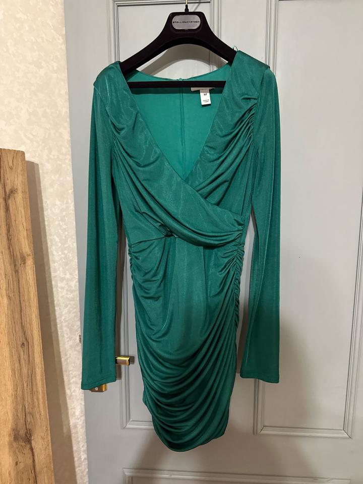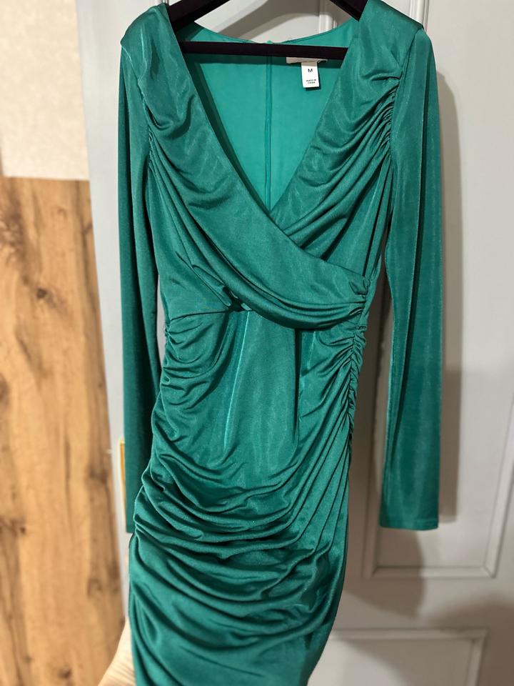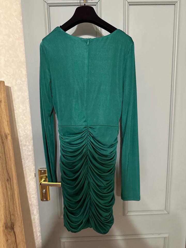 Платье от Oneness в насыщенном изумрудном оттенке. Облегающий крой с драпировкой подчёркивает фигуру и визуально моделирует силуэт. Глубокий V-вырез и длинные рукава добавляют элегантности и женственности. Мягкая ткань красиво ложится по телу — идеальный вариант для вечерних выходов. Артикул: 600646